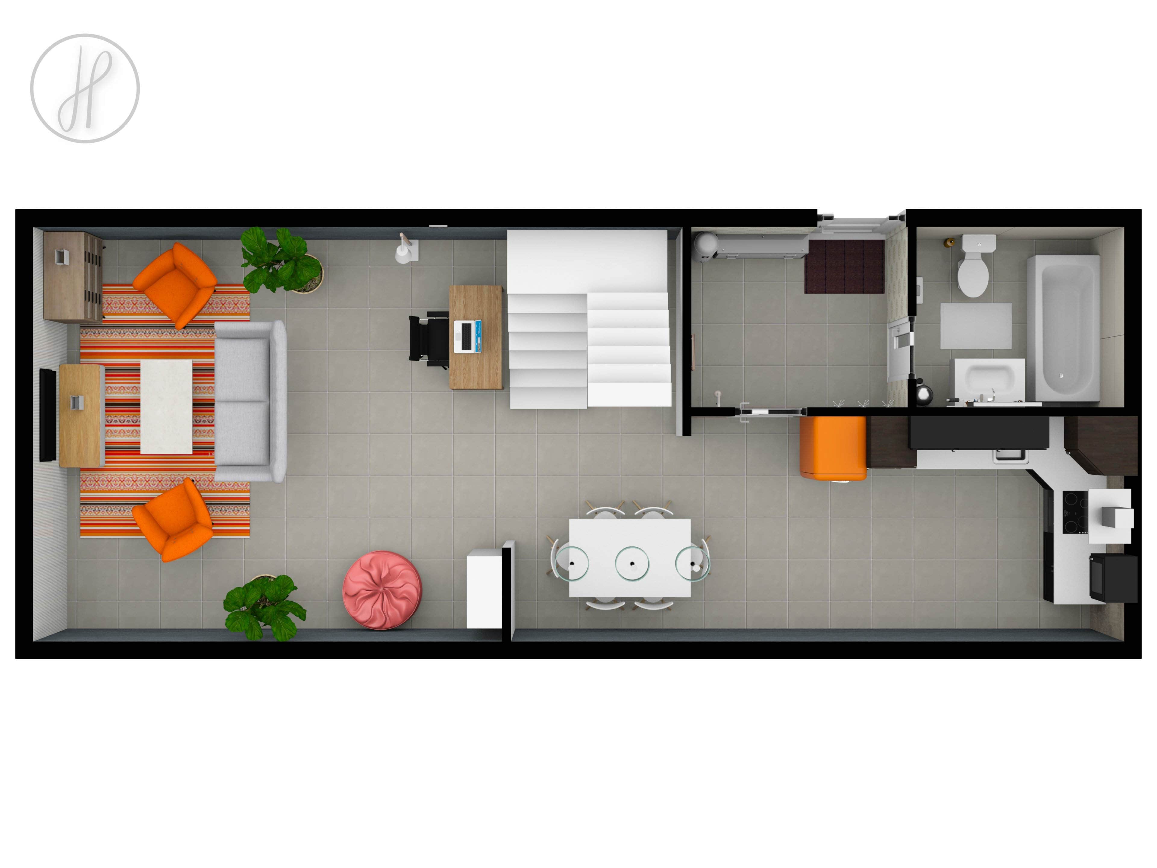 - Vstupní chodba a koupelna s vanou, umyvadlem a toaletou.