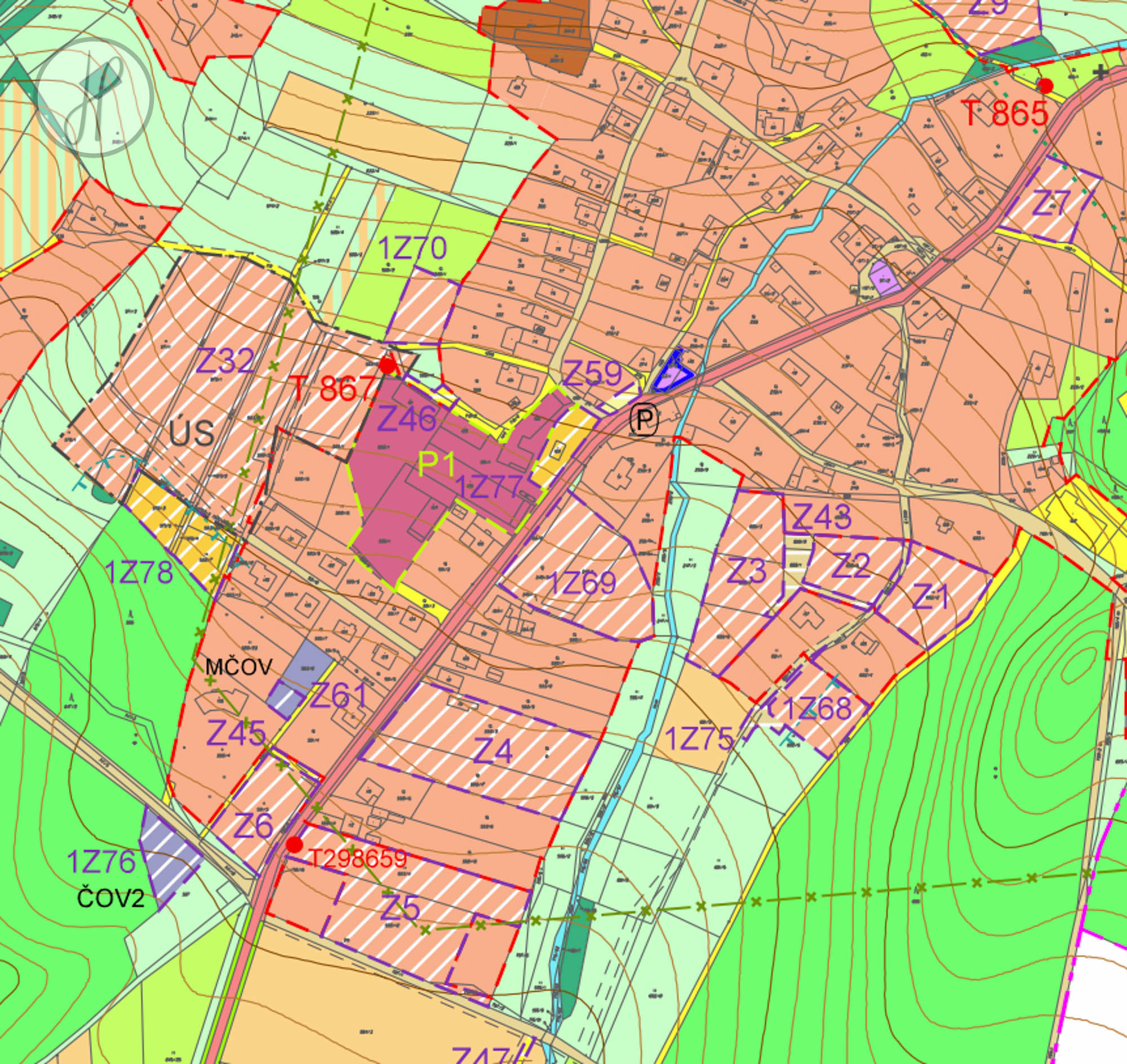 - Podmínky výstavby: Max. 1 nadzemní podlaží + podkroví, možnost podsklepení.