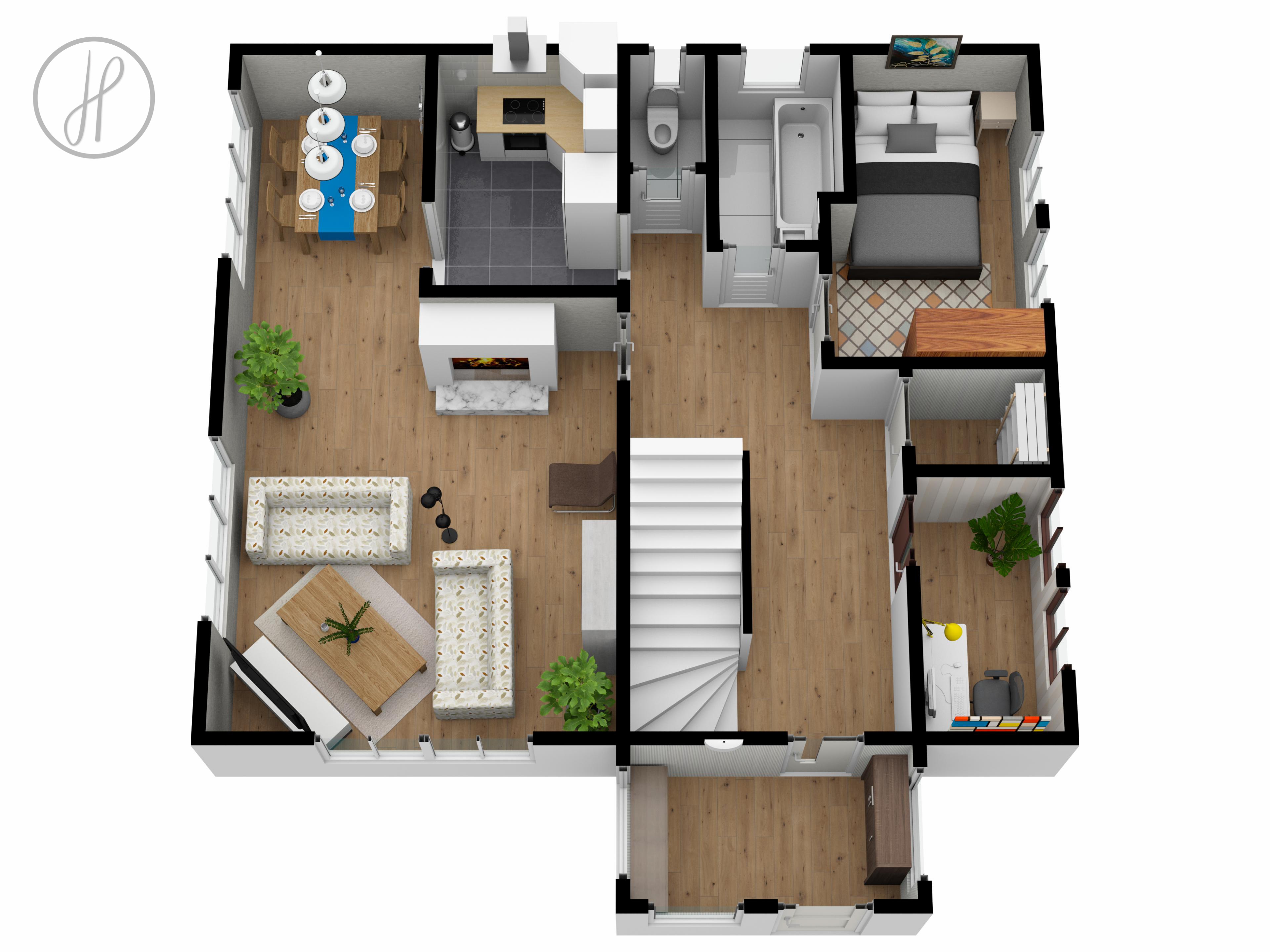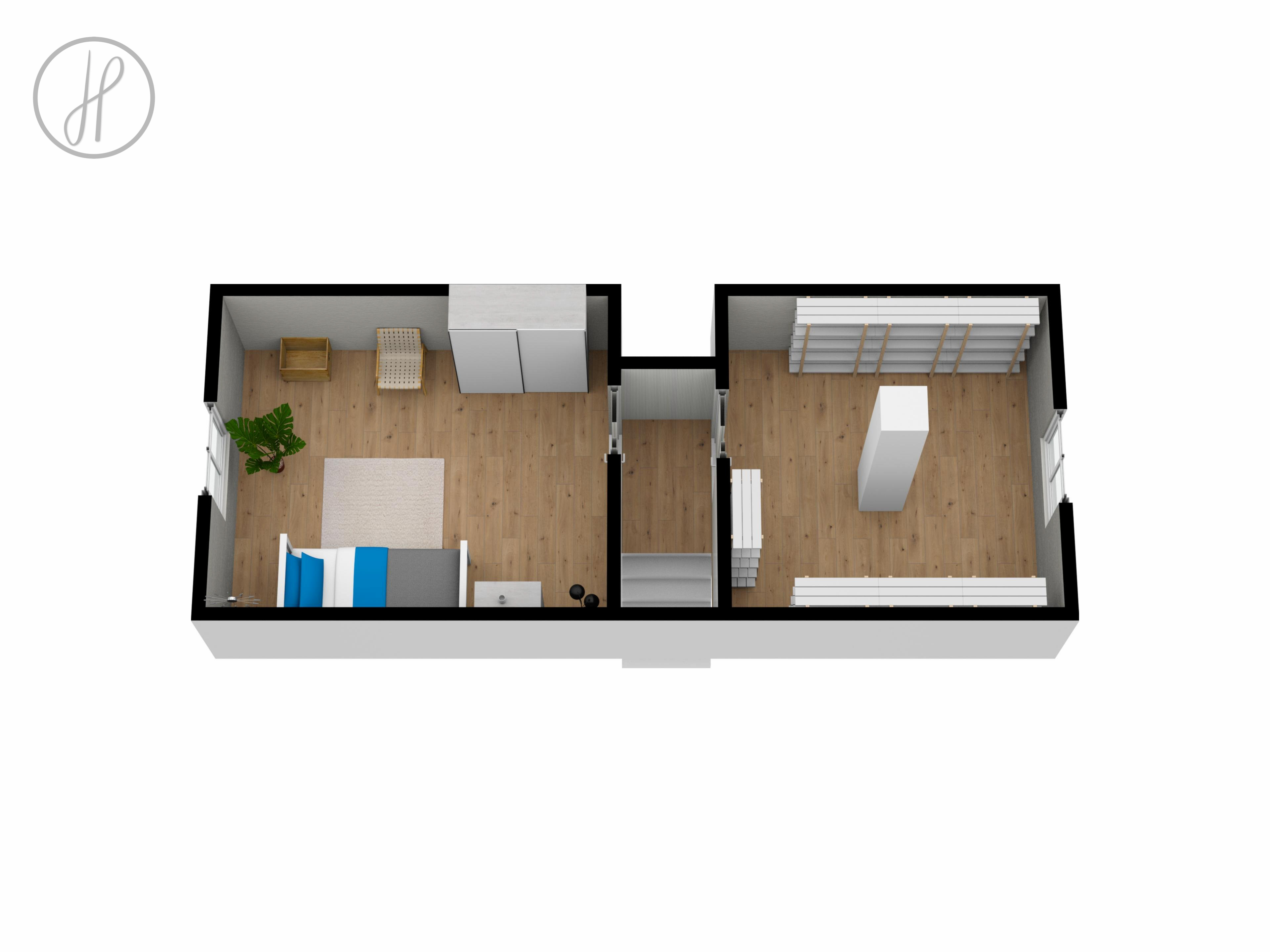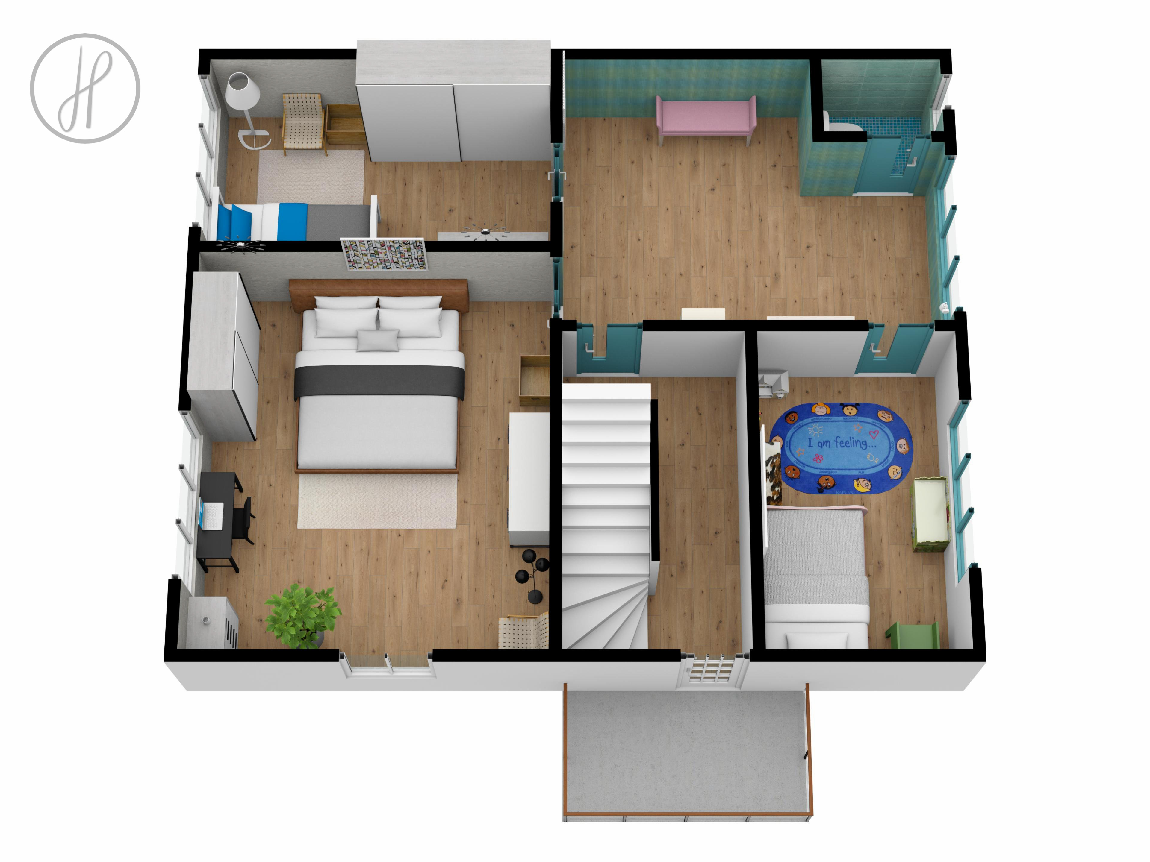 Aktuální vnitřní uspořádání: Obývací pokoj s jídelnou, kuchyň, 3 ložnice, šatna (možná pracovna), dílna v přízemí a dvě rozlehlé půdy připravené pro vybudování dalších obytných místností.