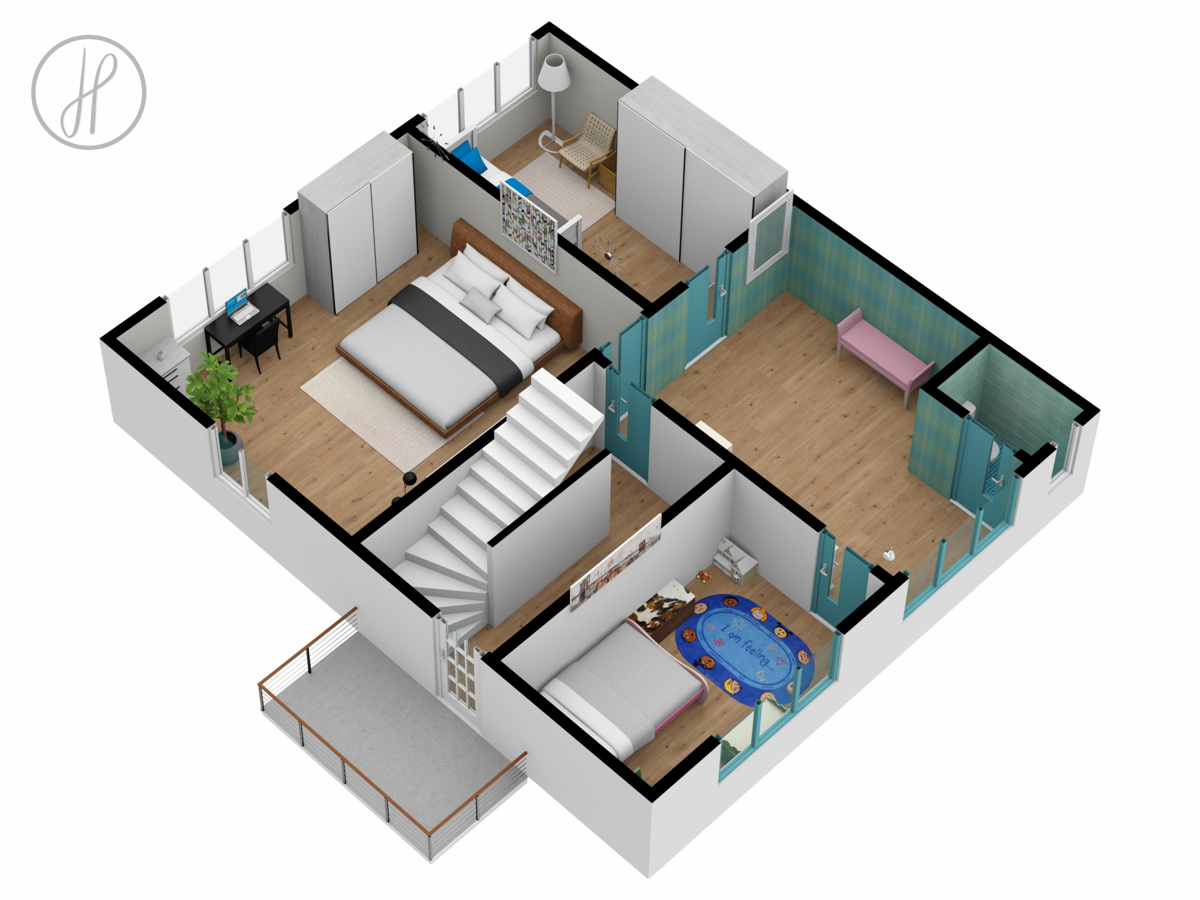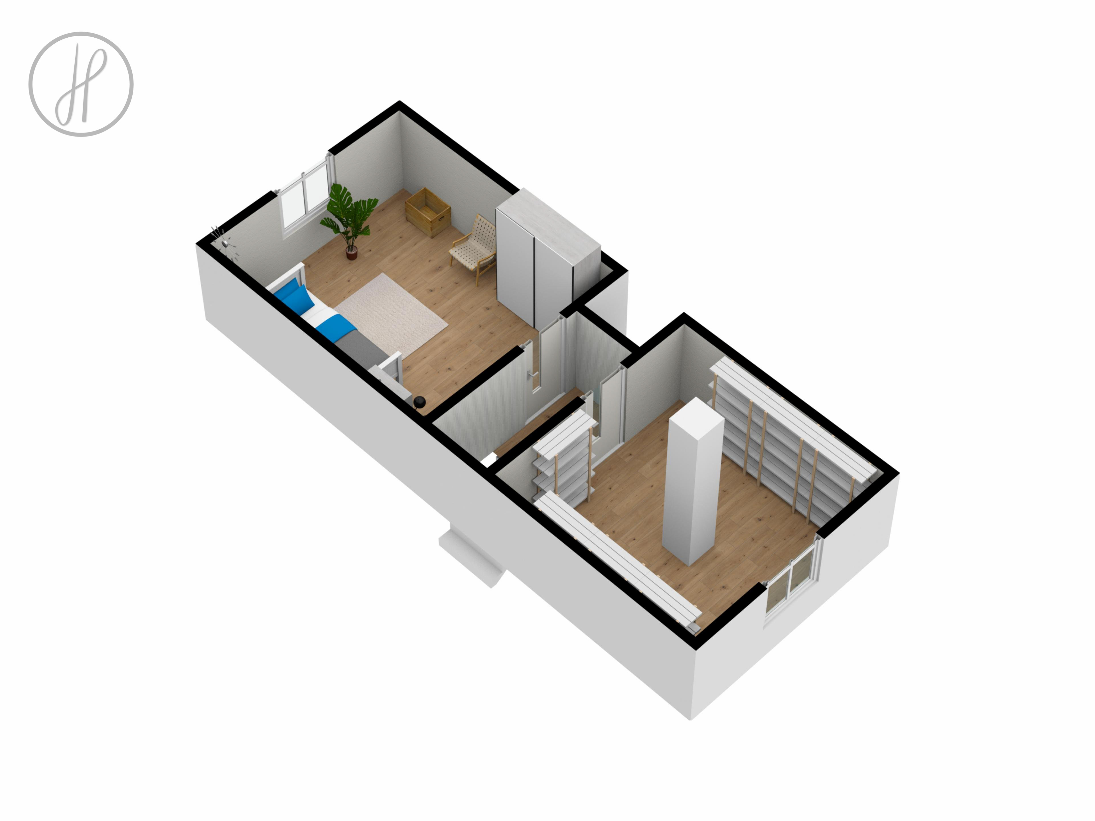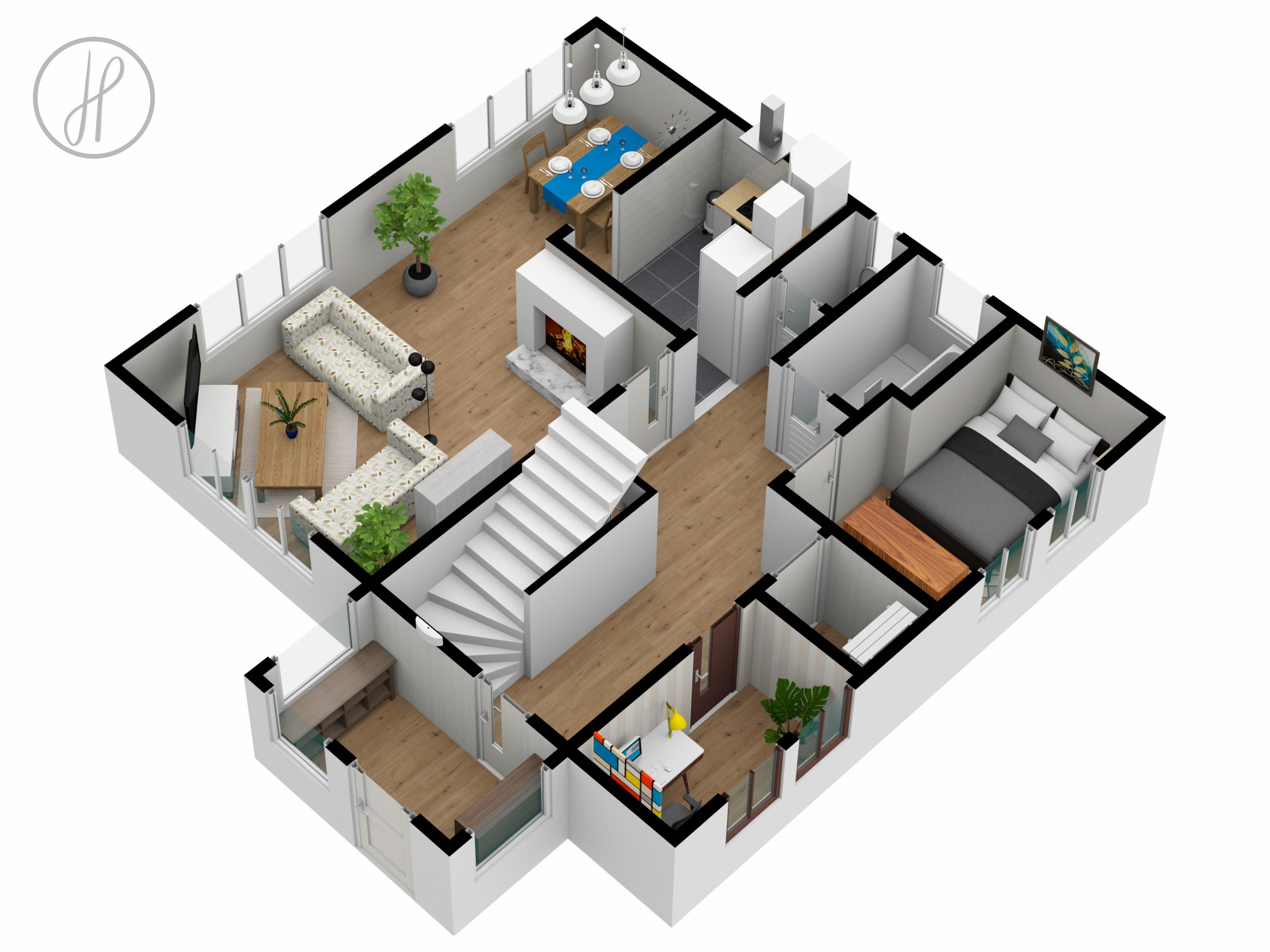 Aktuální vnitřní uspořádání: Obývací pokoj s jídelnou, kuchyň, 3 ložnice, šatna (možná pracovna), dílna v přízemí a dvě rozlehlé půdy připravené pro vybudování dalších obytných místností.