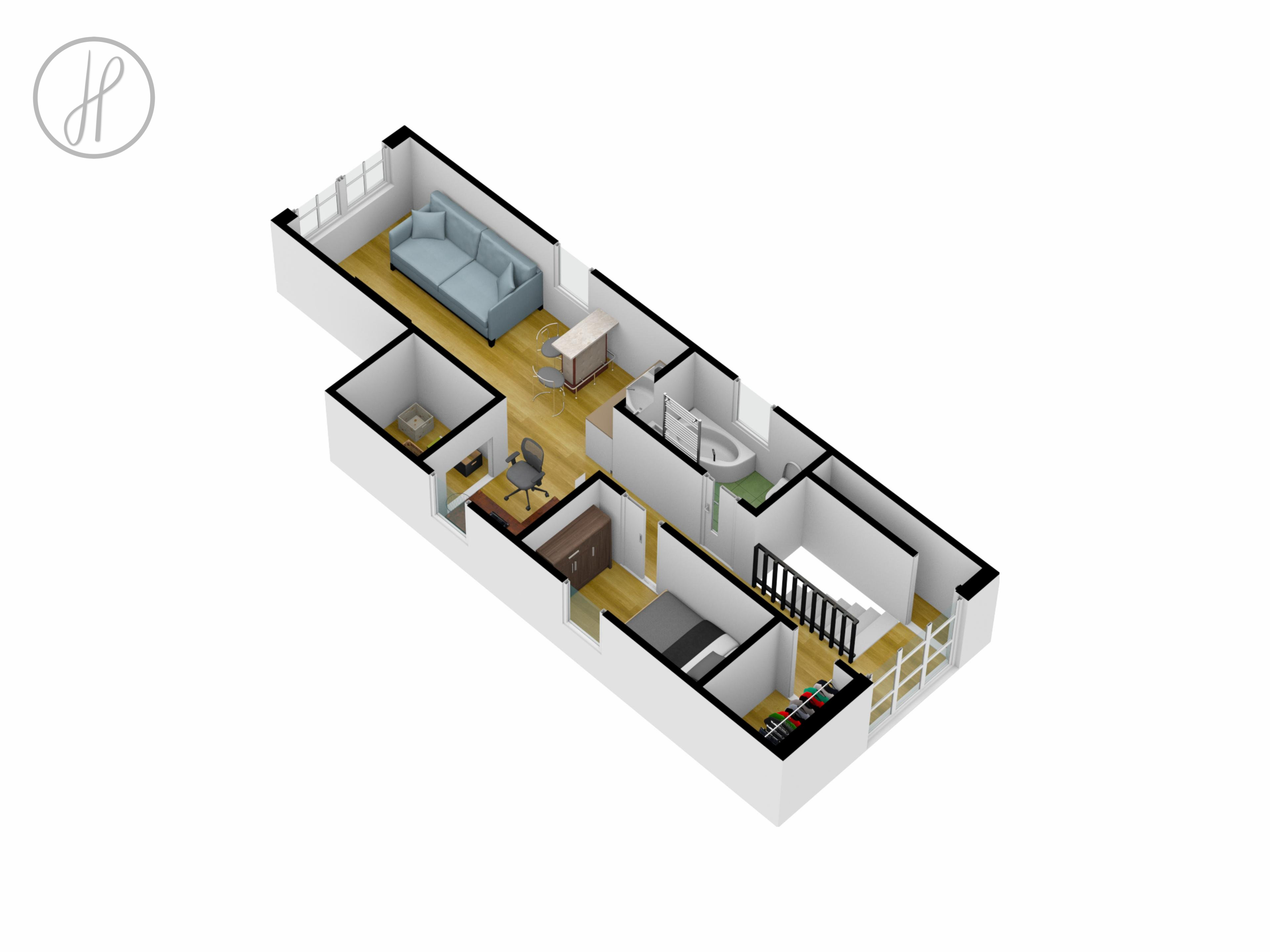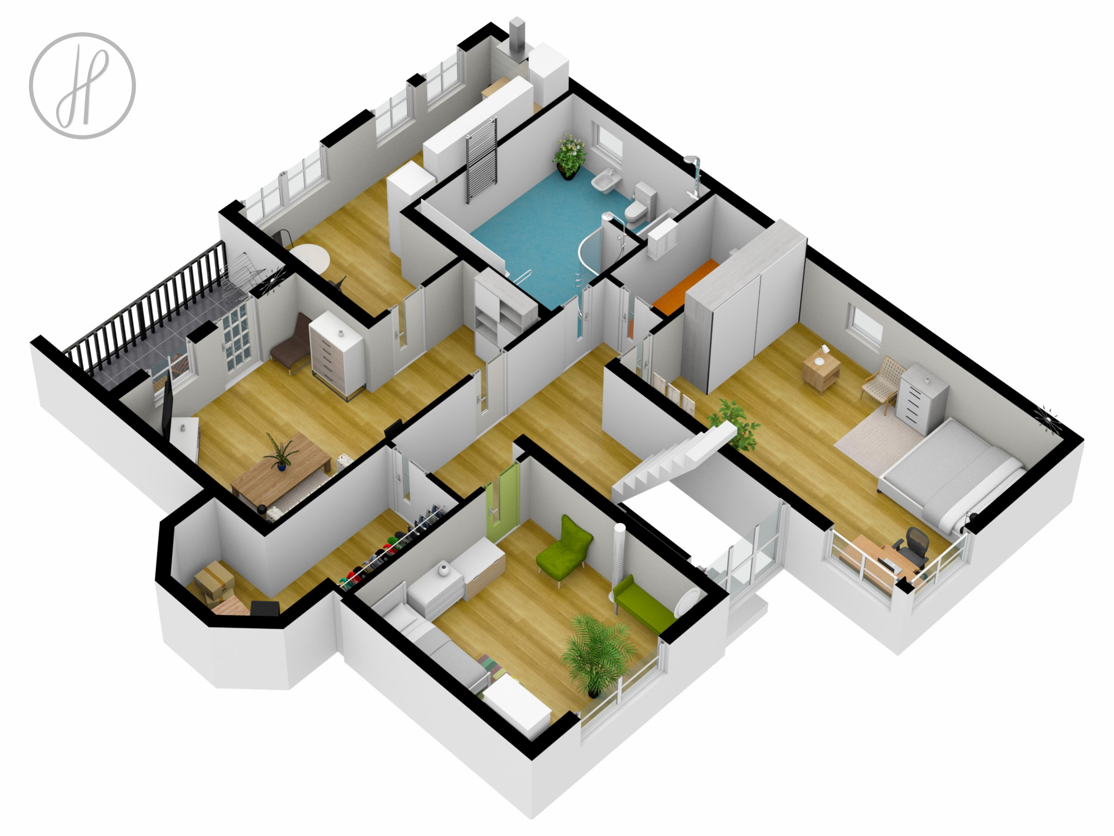 - Materiály: V domě jsou použity plovoucí podlahy, obložkové dveře a kvalitní keramické obklady.