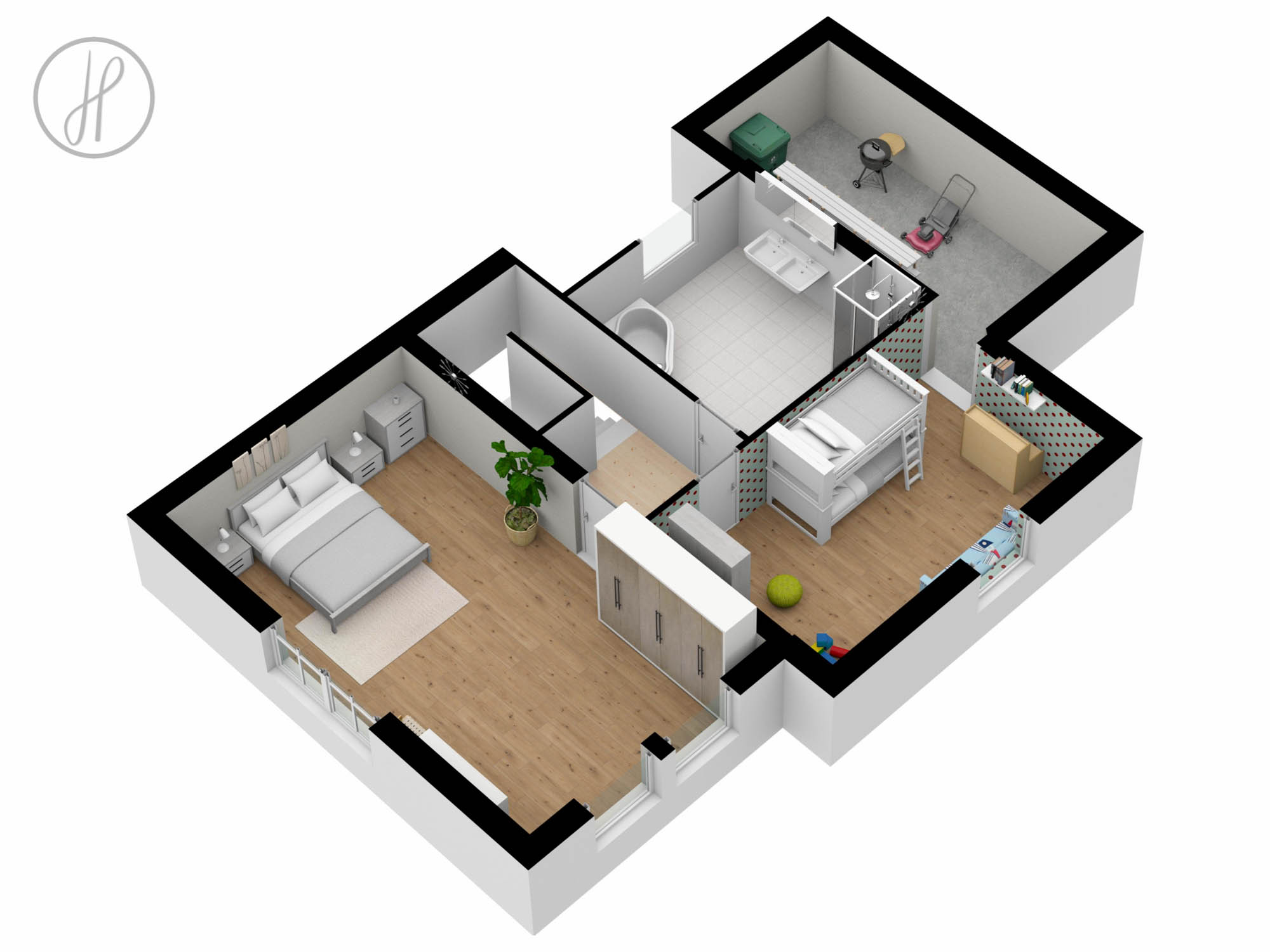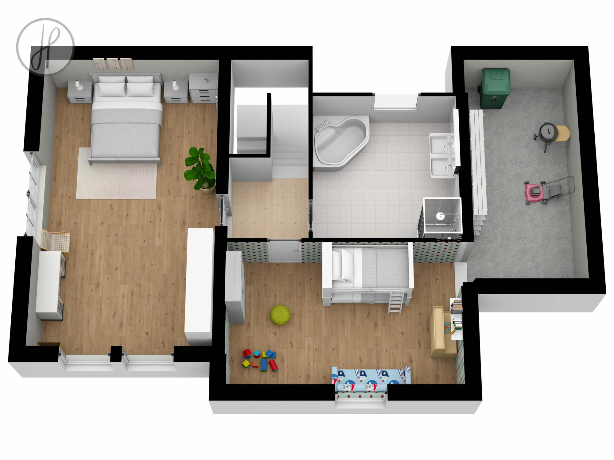 - 2. NP – dvě ložnice a prostorná koupelna.