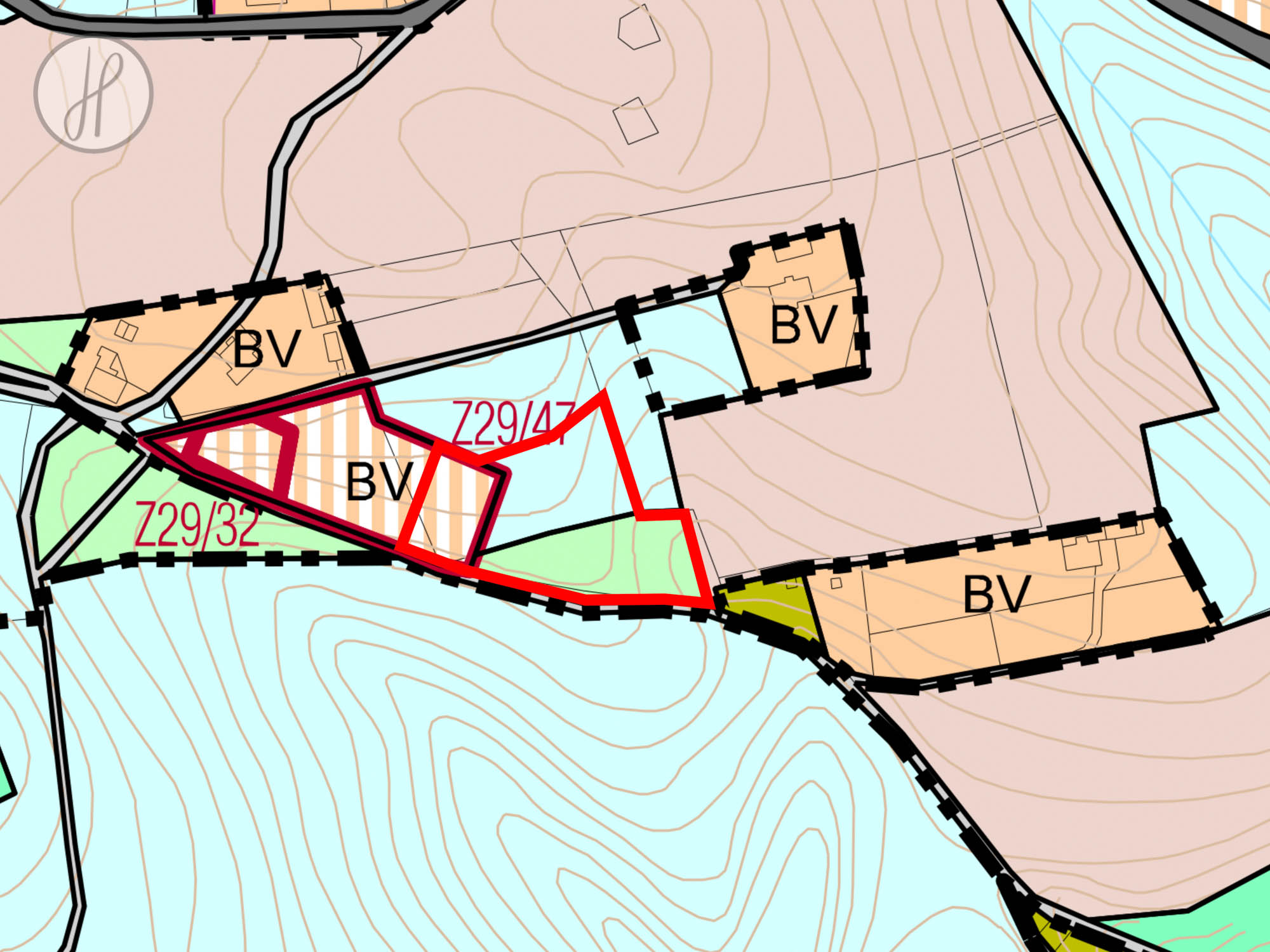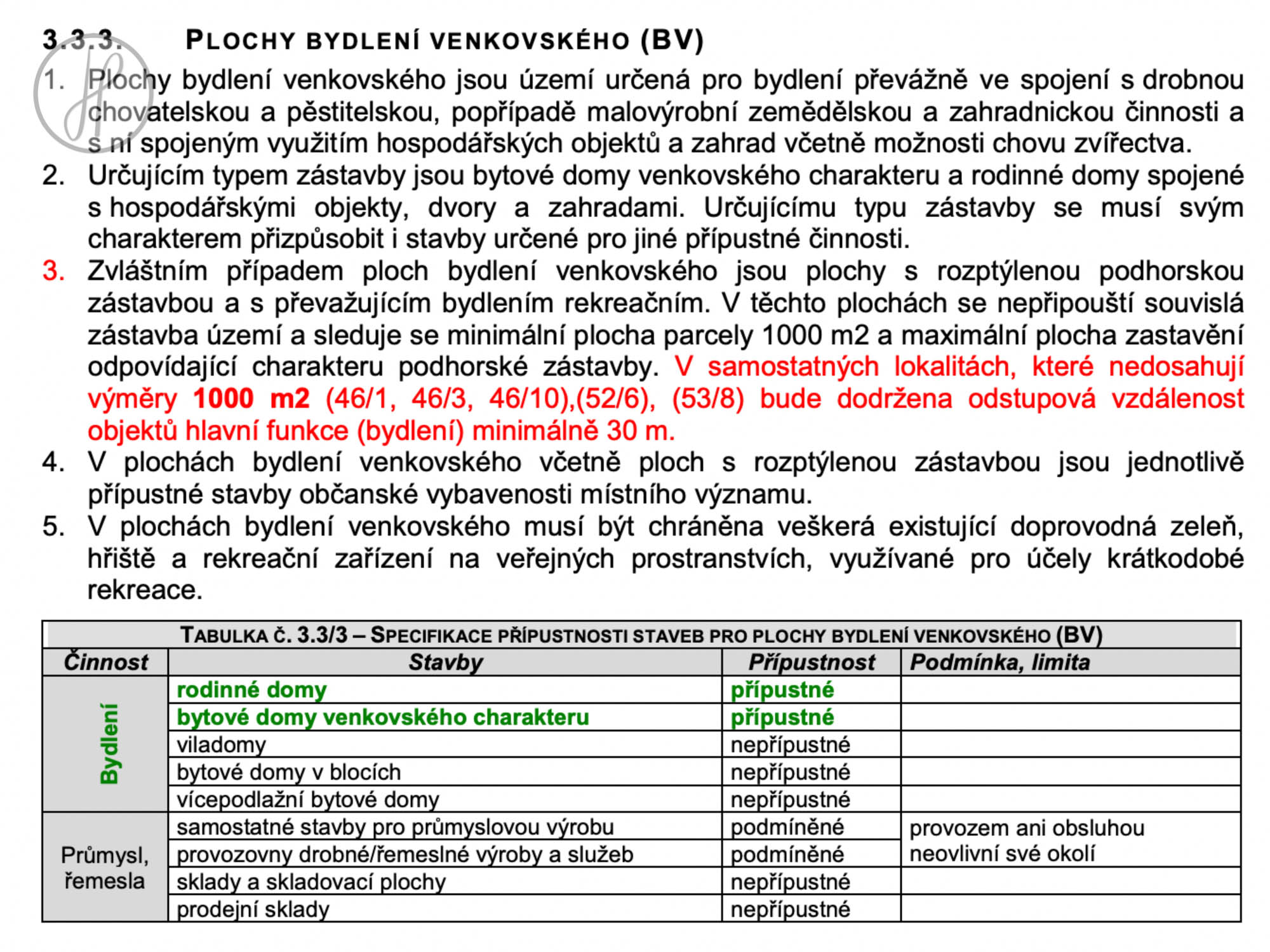 - 1 134 m2 (p.č. 283/22): v územním plánu vedeno jako bydlení venkovské (BV).