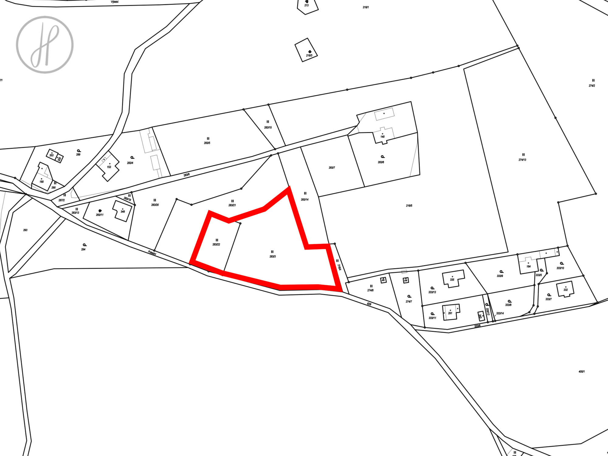 - 4 348 m2 (p.č. 283/3): v územním plánu vedeno jako krajinná zeleň a travní porost.