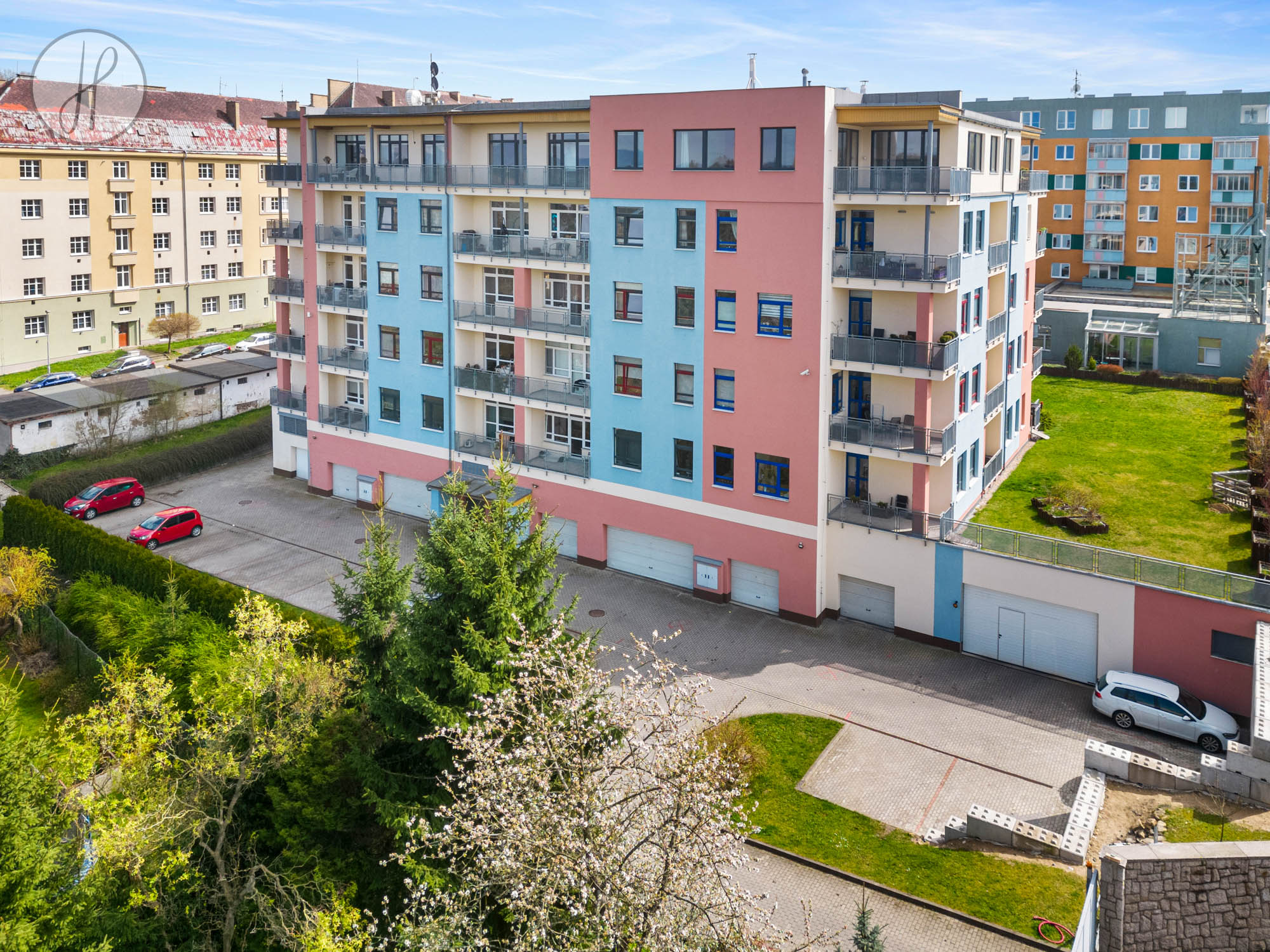 - Bonusy komplexu: Nájemci mohou využívat bazén, společnou zahradu s dětským hřištěm, pergolu a společenskou místnost s barem.