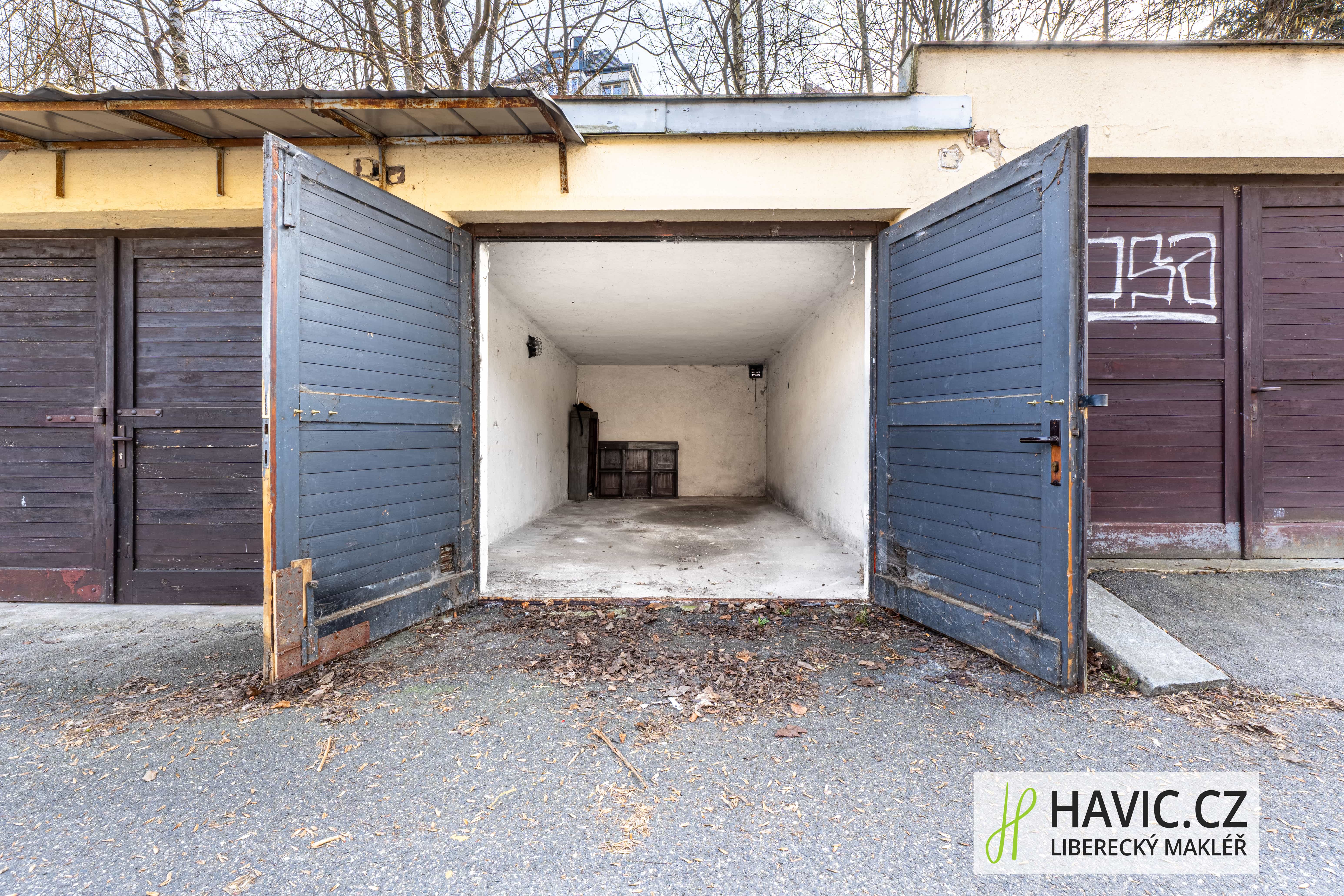 Garáž je ve velmi dobrém stavu, stěny jsou zděné, podlaha betonová a má dřevěná vrata, střešní krytina nová lepenková. Do garáže je zavedena elektřina s podružným elektroměrem. Příjezd ke garáži je po manipulační ploše, která je ve vlastnictví města Liberec.