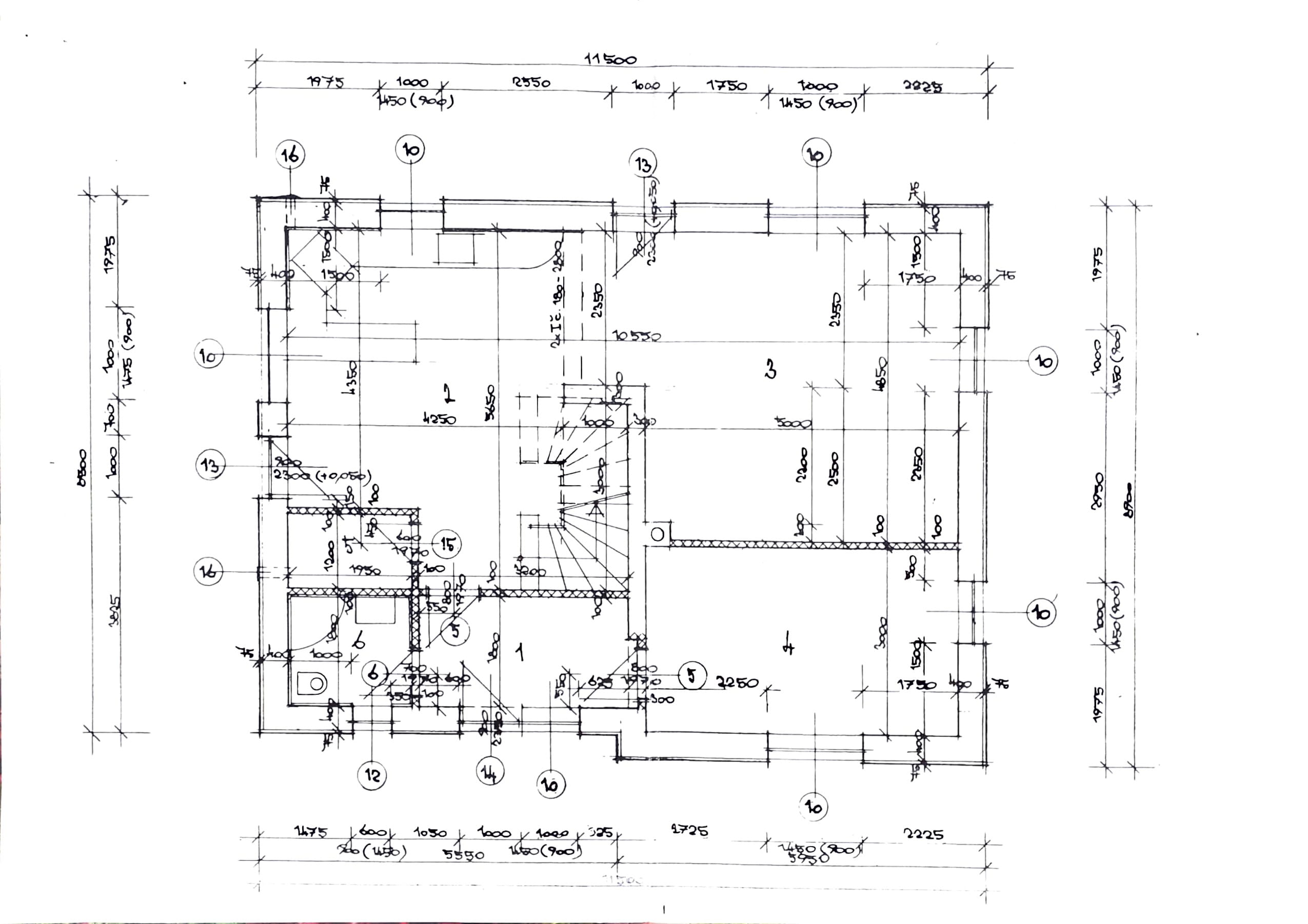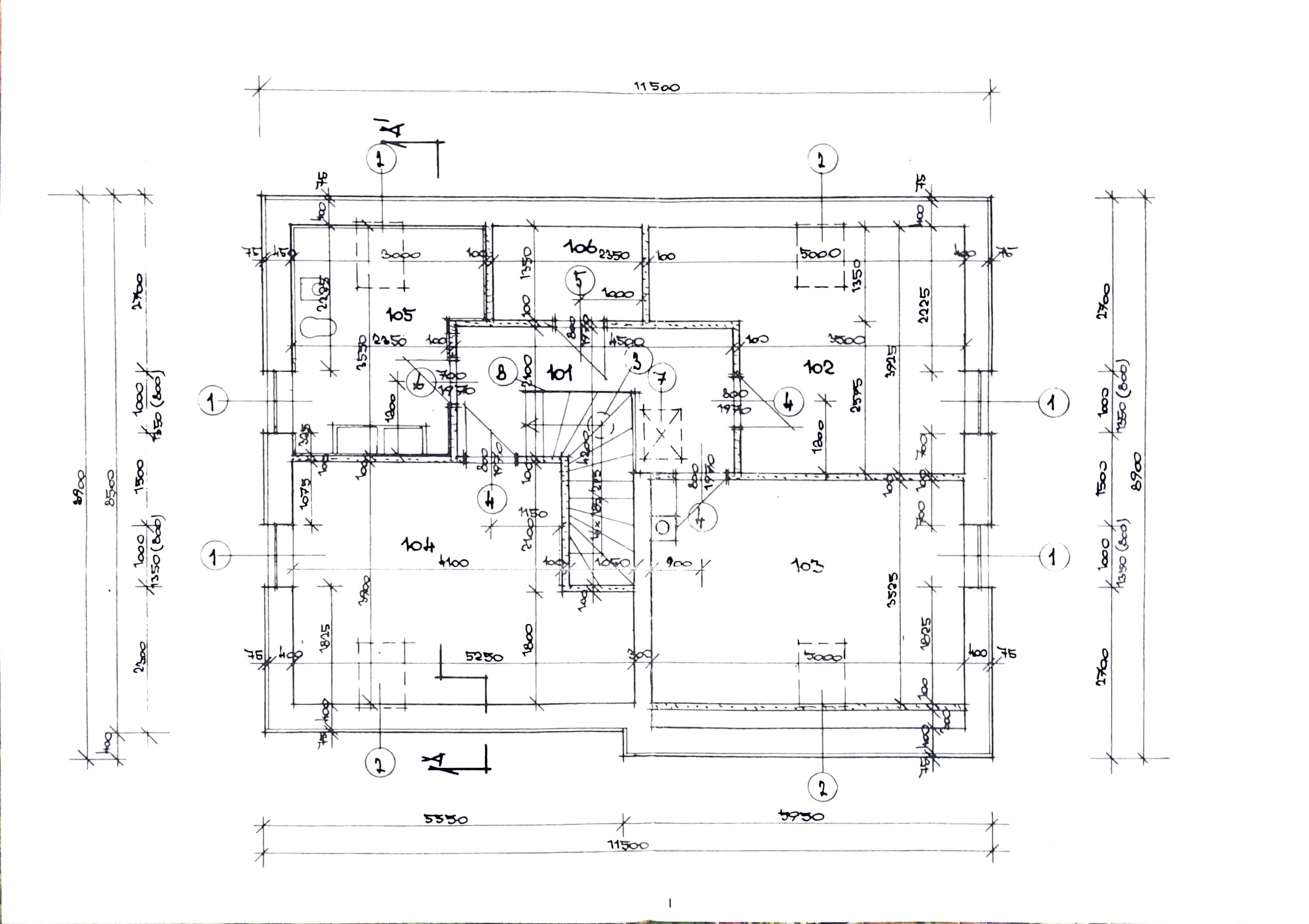 - Místnosti 1. NP (přízemí): Zádveří (5,76 m2), prostorná kuchyně (24,0 m2), obývací pokoj (27,3 m2), pracovna (15,0 m2), koupelna s toaletou (3,51 m2) a praktická spíž (2,34 m2).