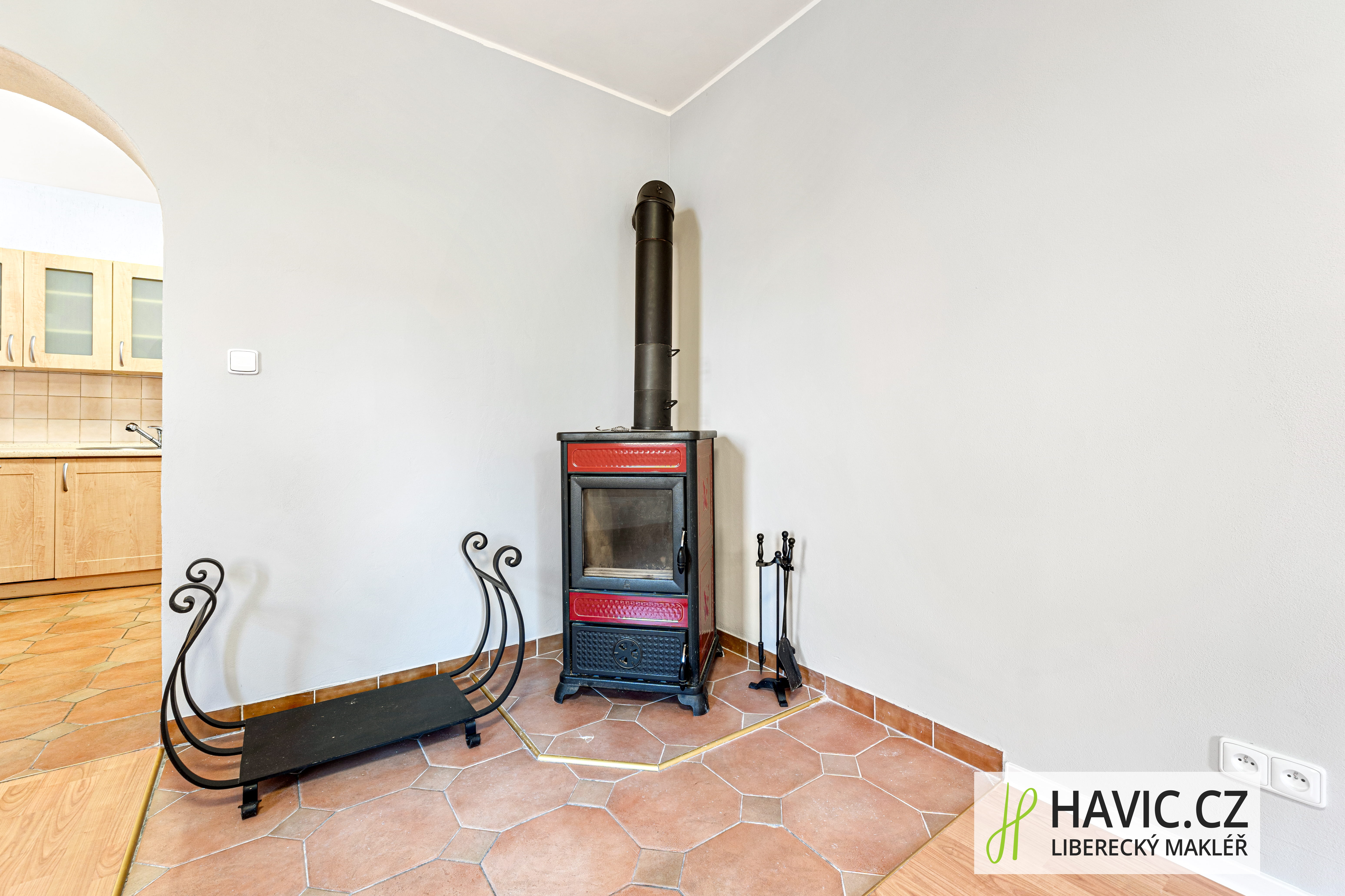 - Vytápění: Ústřední plynové v kombinaci s krbovými kamny pro příjemnou atmosféru a úsporu nákladů.