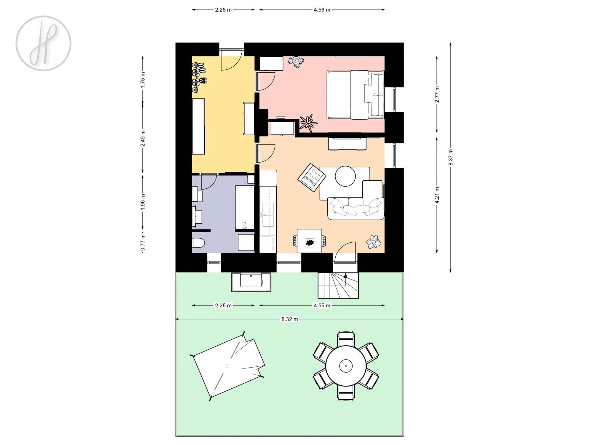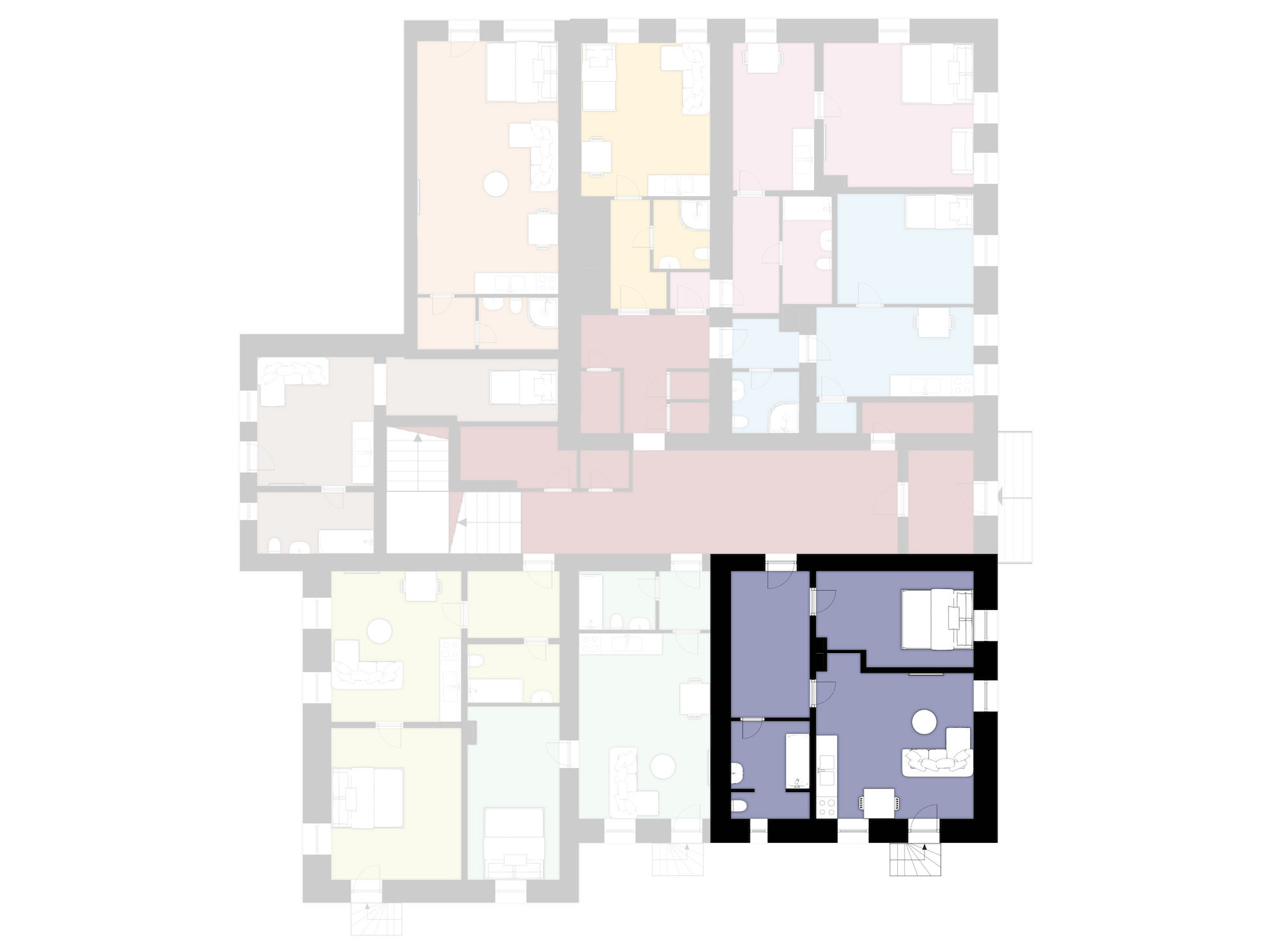 Součástí tohoto bytu je vlastní předzahrádka se vstupem z obývacího pokoje.