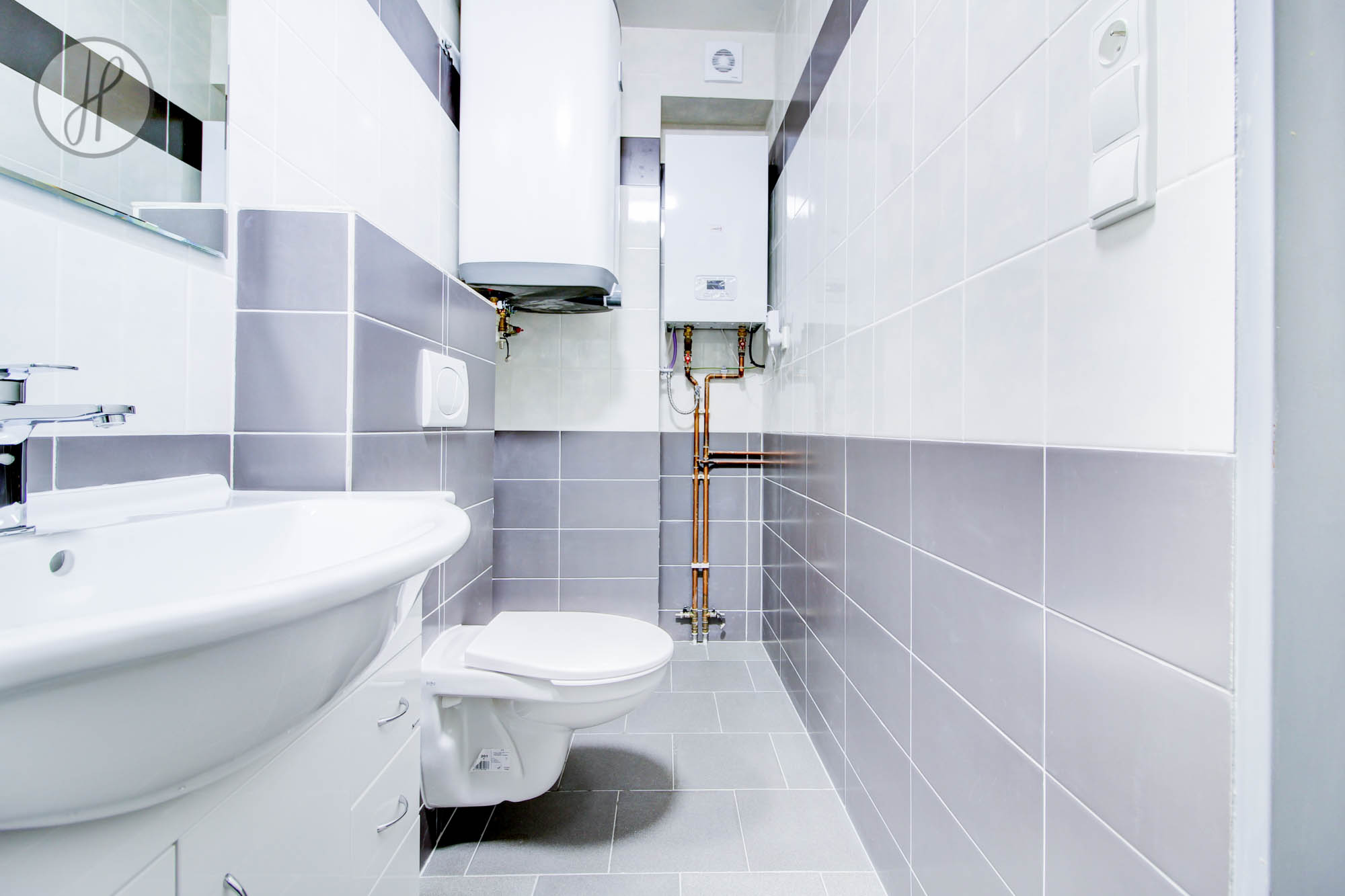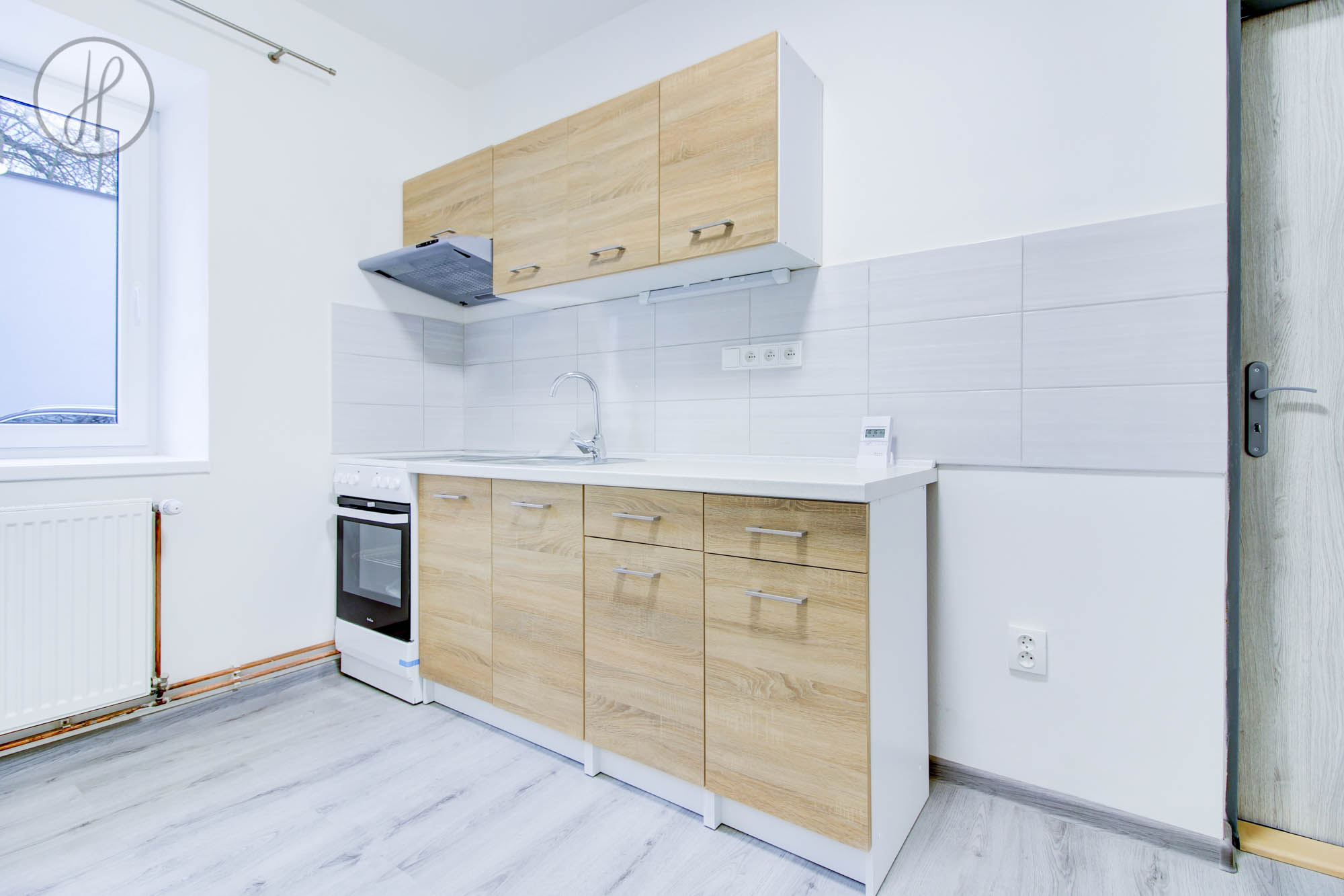 Součástí vybavení bytu je kotel, bojler, trouba se sklokeramickou deskou, digestoř a kuchyňská linka.