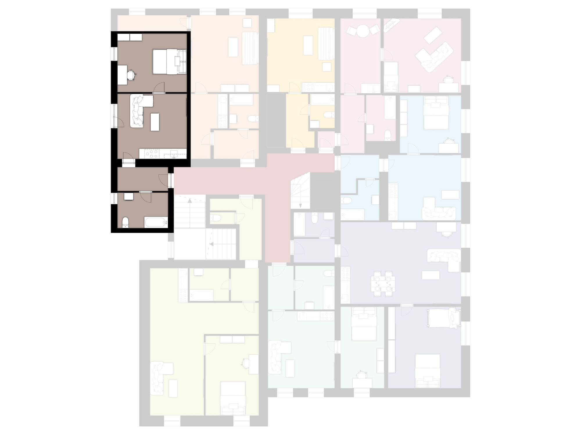 Jednotka o užitné ploše 43,73 m2 se nachází ve 2. NP zděného domu po kompletní rekonstrukci.
