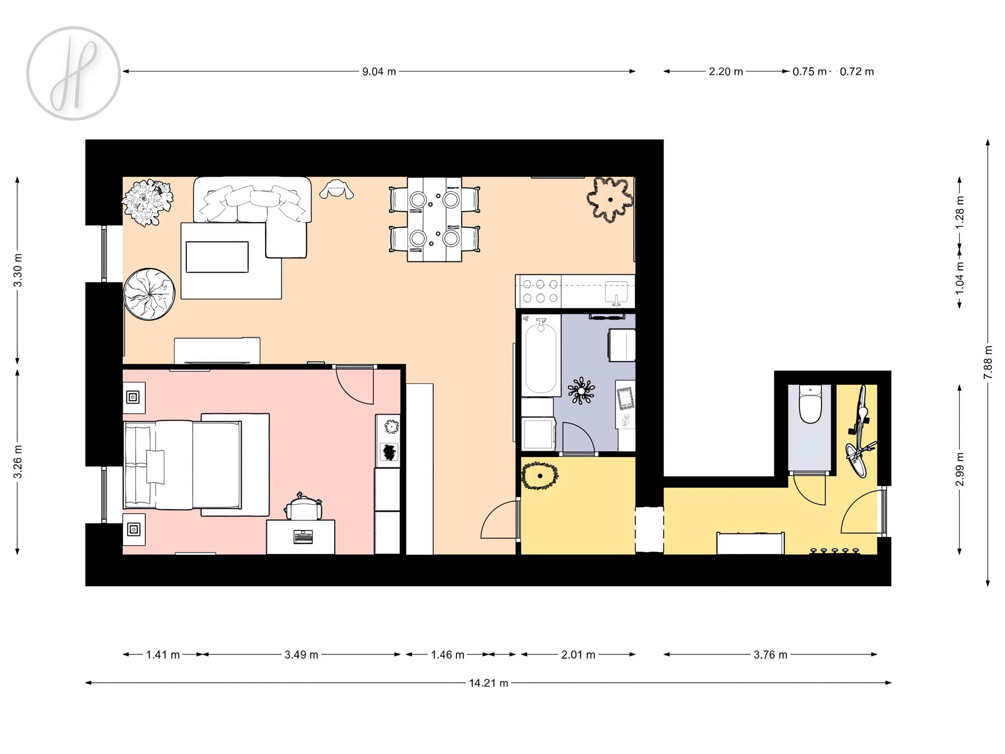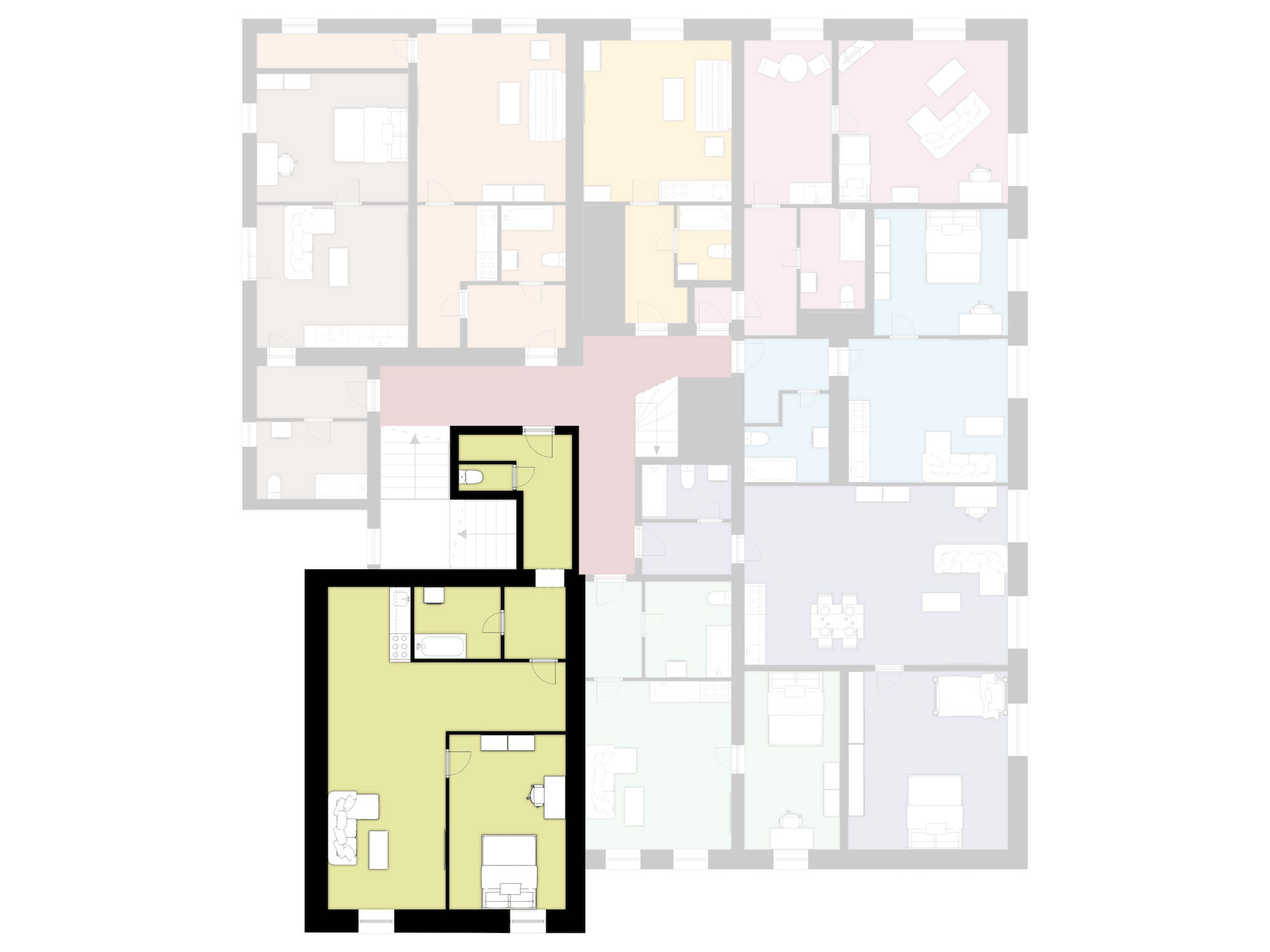 Jednotka o nadstandardní užitné ploše 66,61 m2 se nachází ve 2. NP zděného domu po kompletní rekonstrukci.