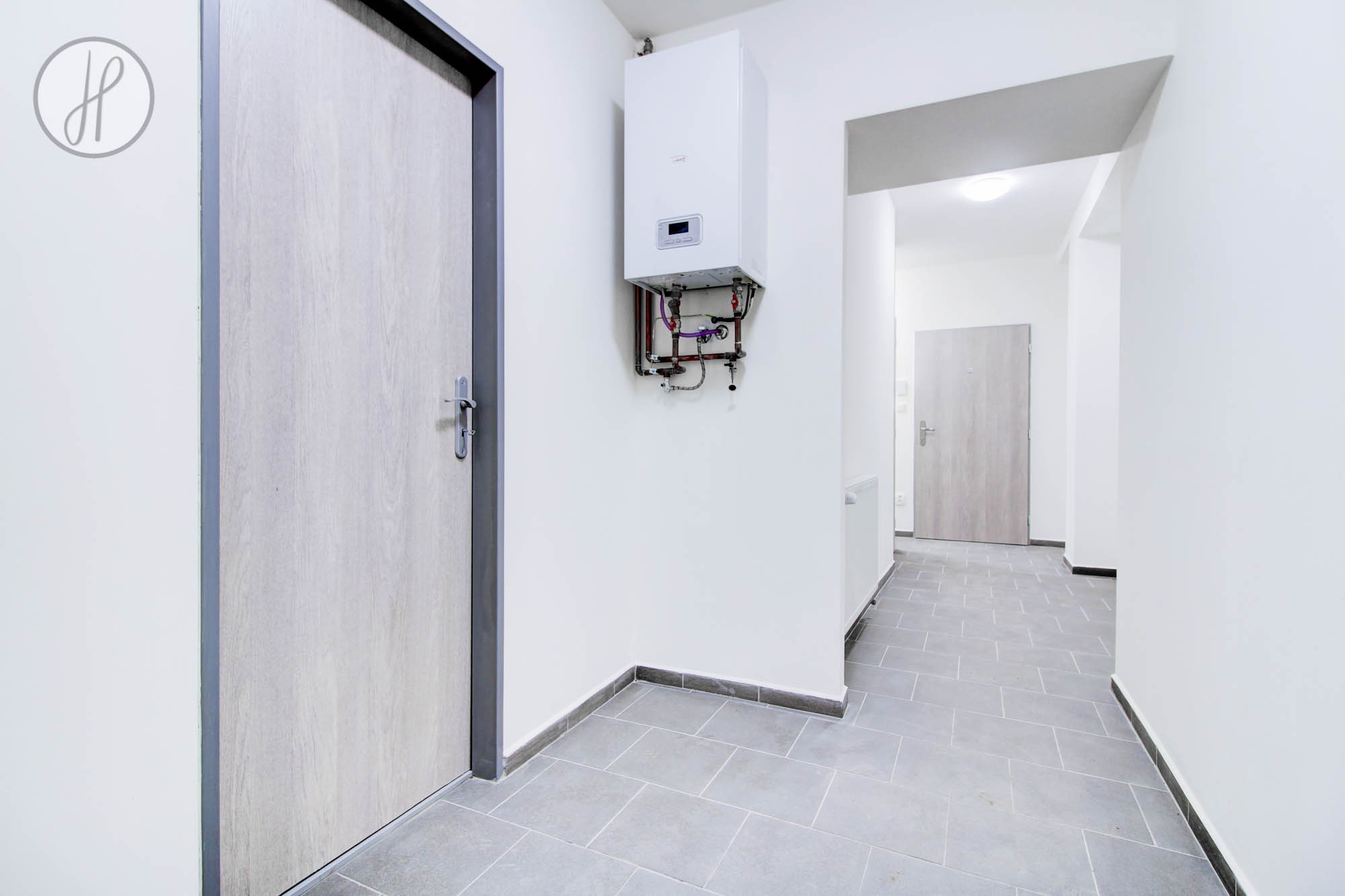 Součástí vybavení bytu je kotel, bojler, trouba se sklokeramickou deskou, digestoř a kuchyňská linka.