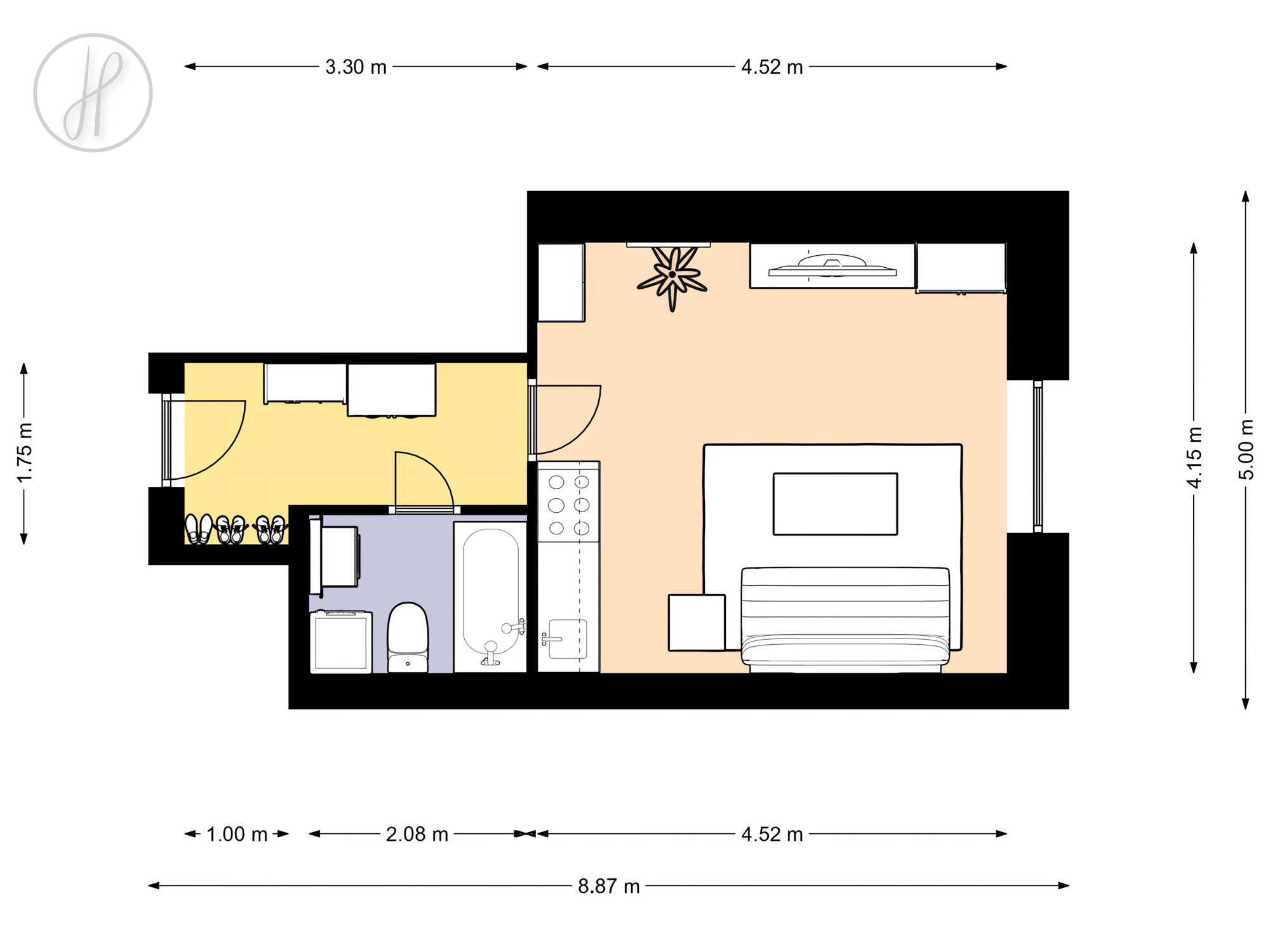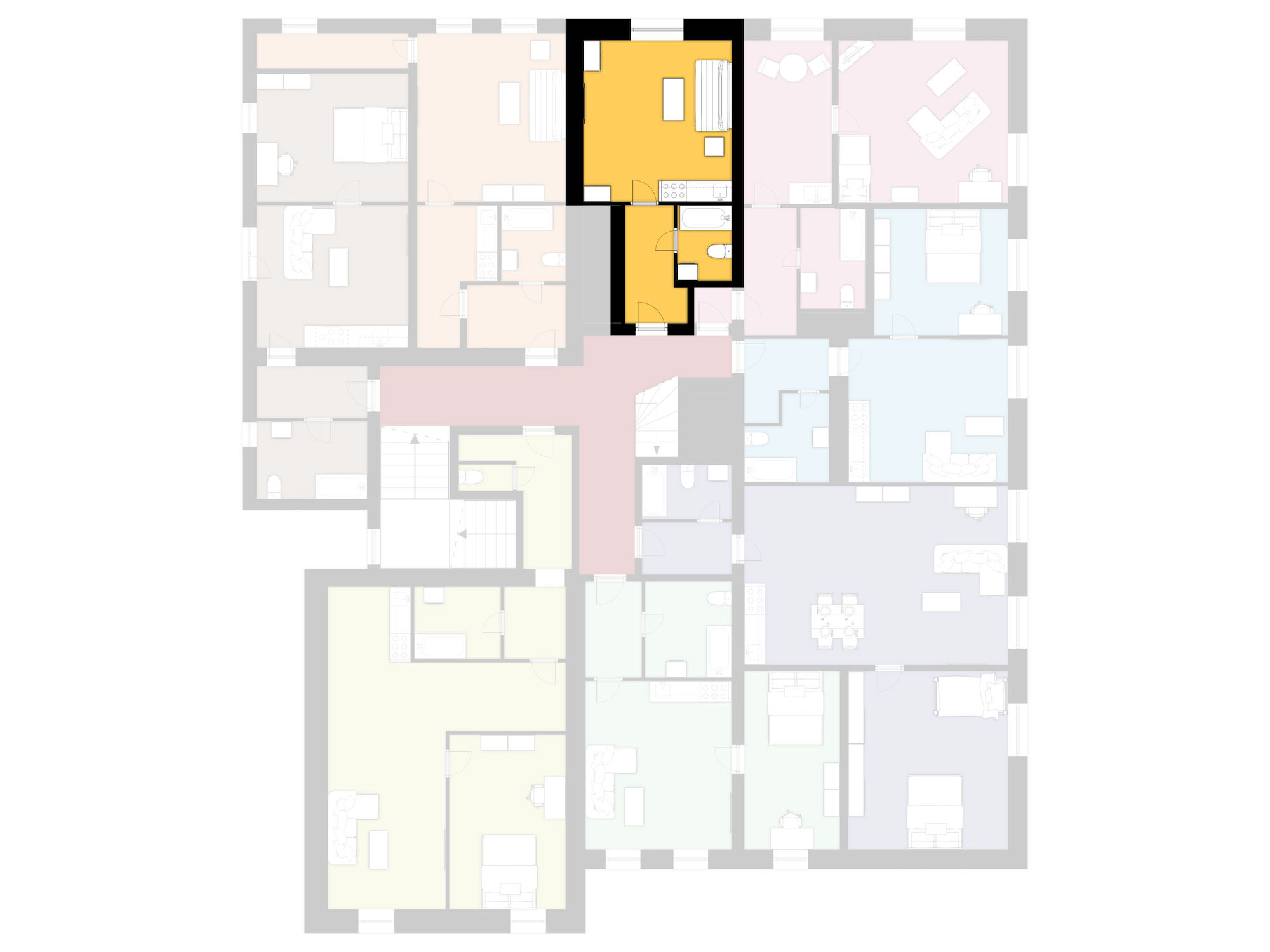 Jednotka o užitné ploše 27,13 m2 se nachází ve 2. NP zděného domu po kompletní rekonstrukci.