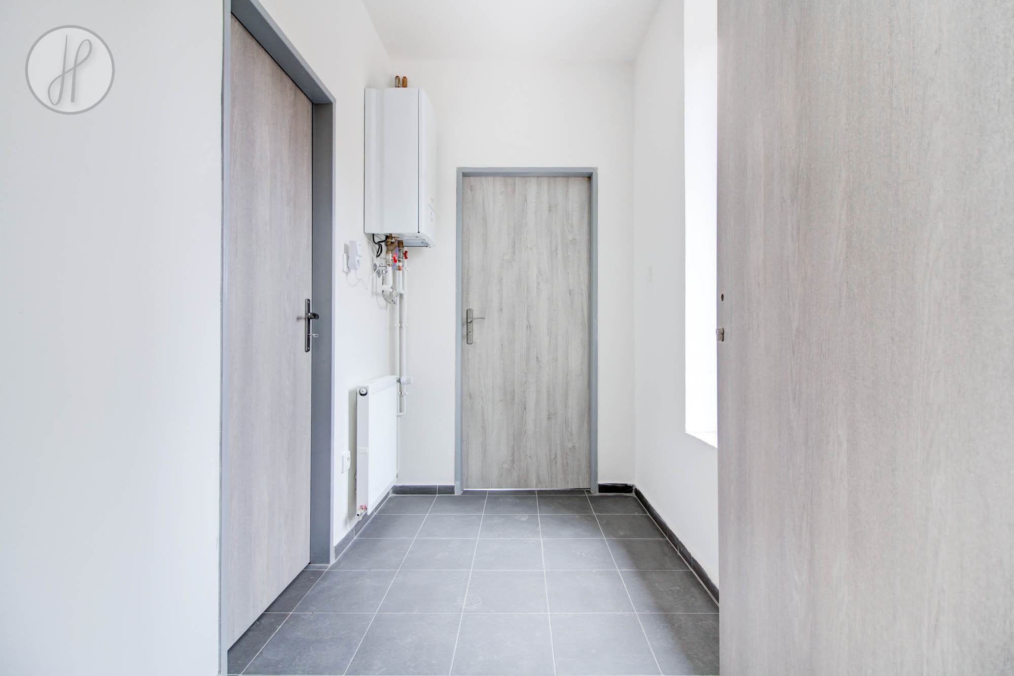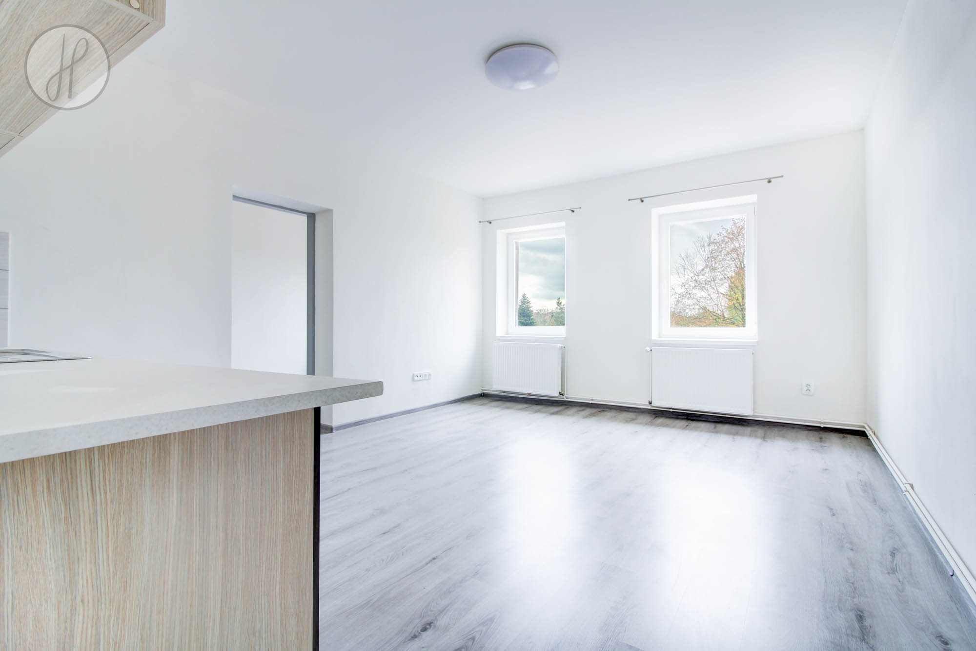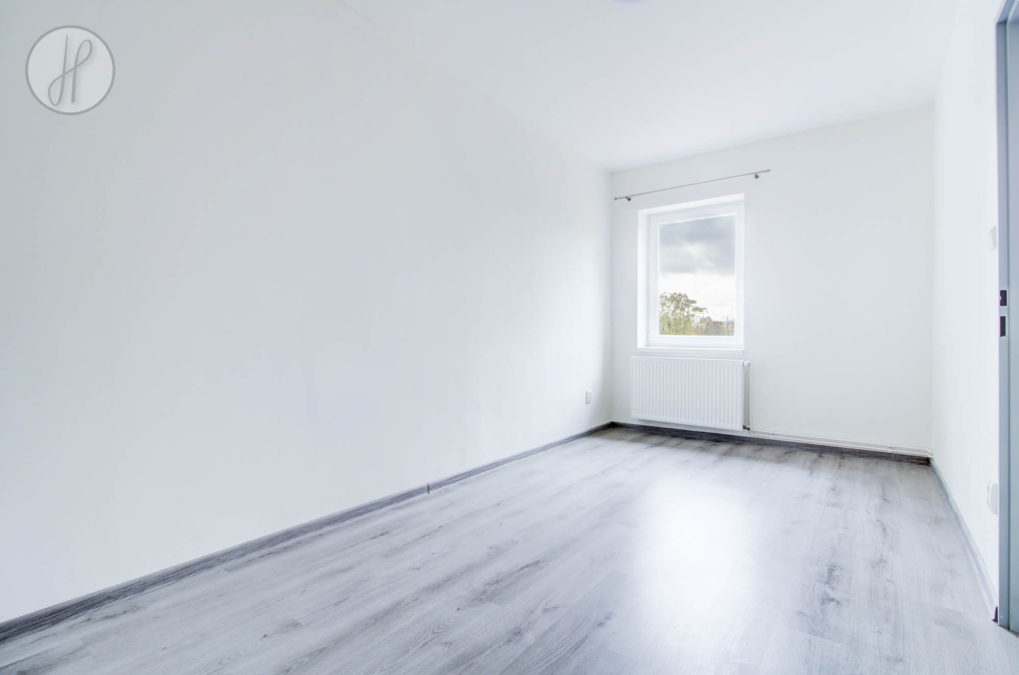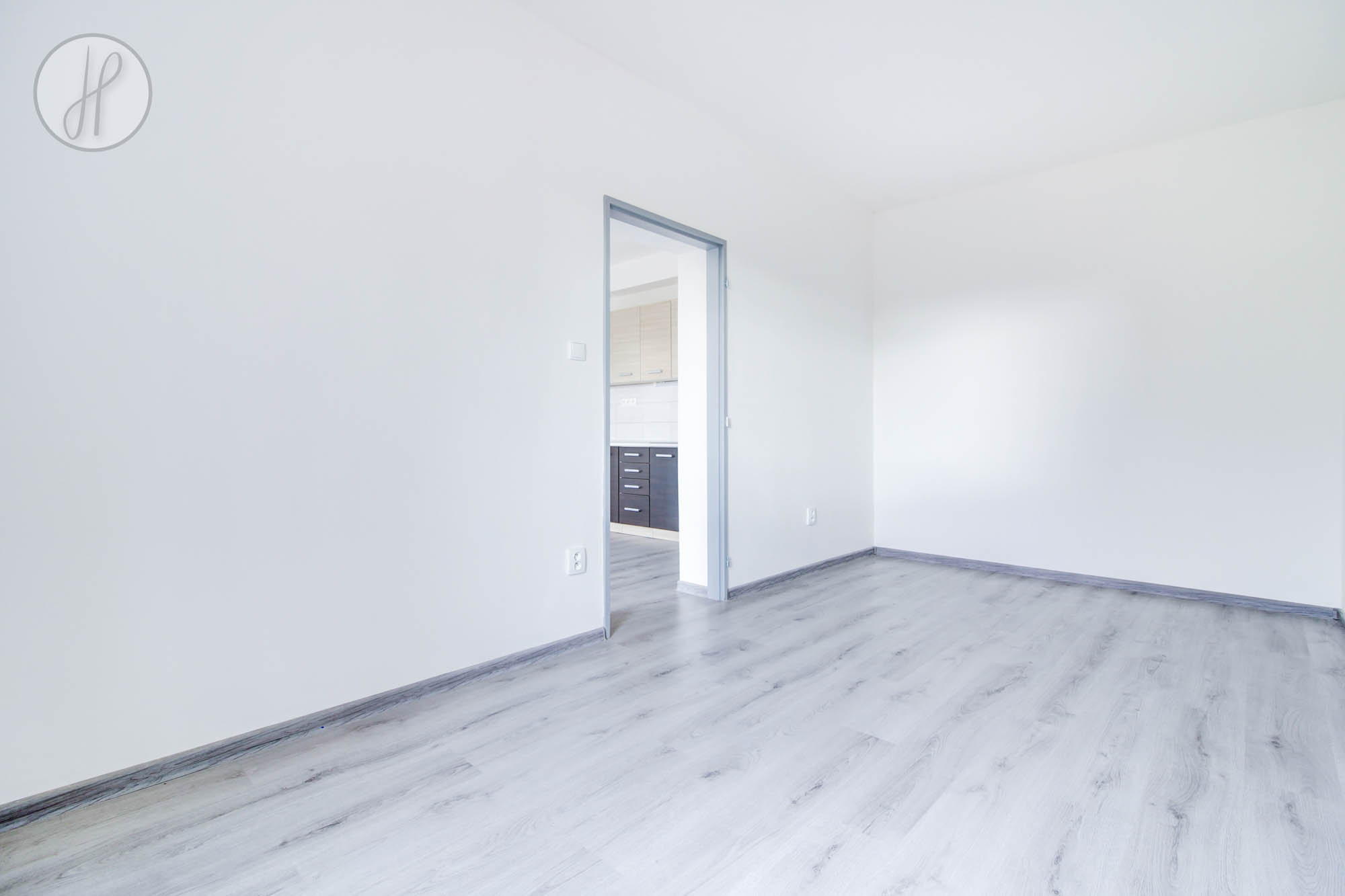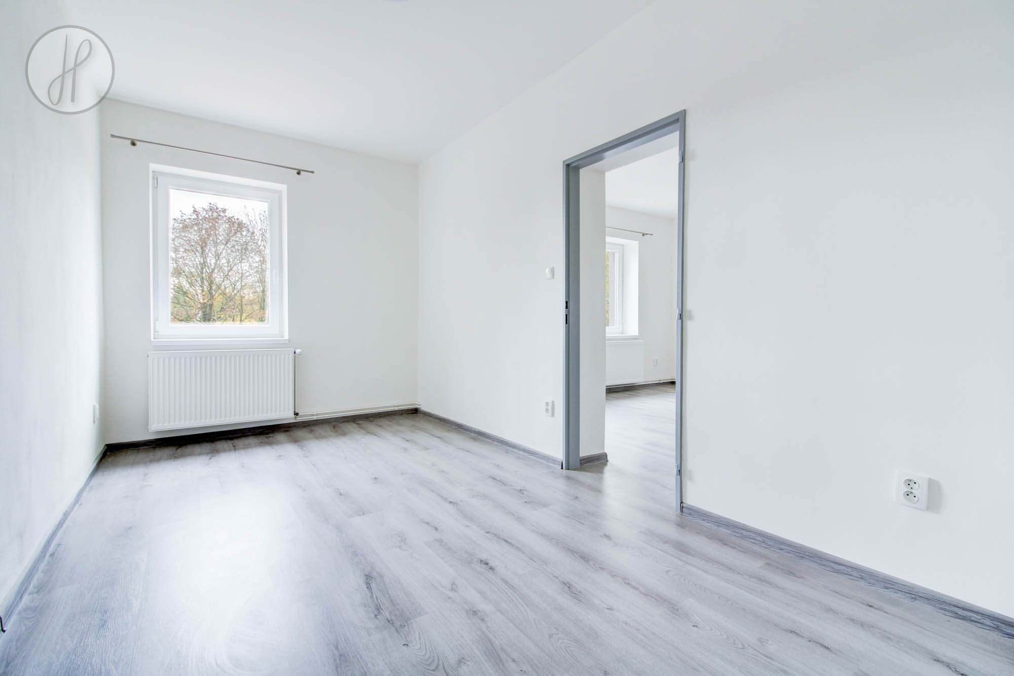 Interiér je po kompletní rekonstrukci, zahrnující nové zděné jádro, plastová okna a moderní povrchy.
