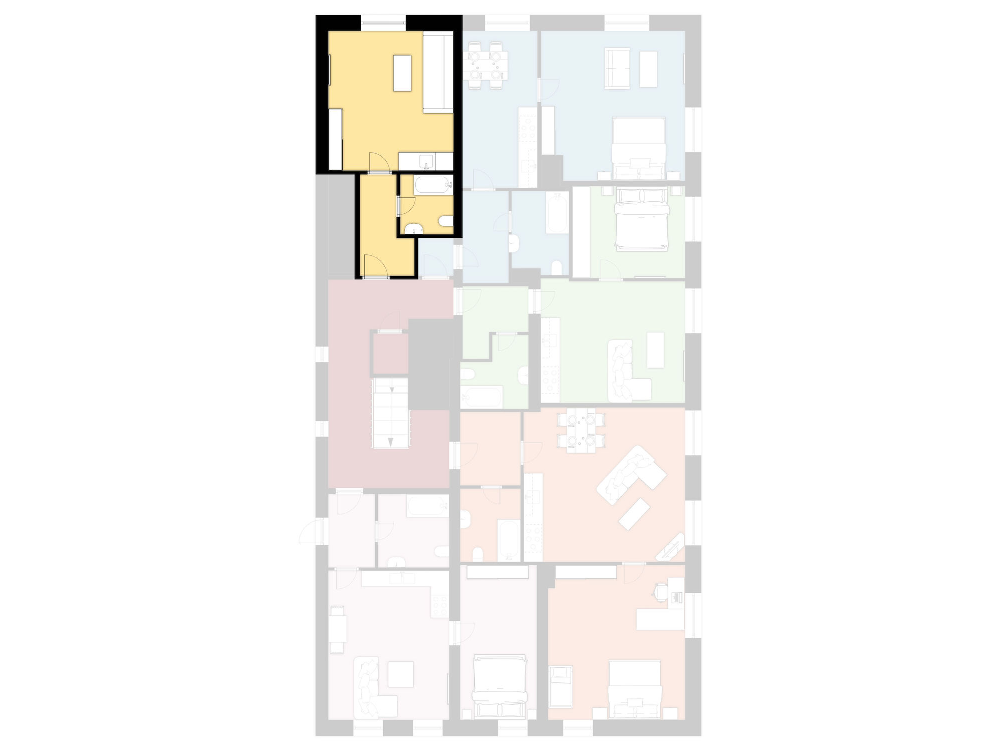 Jednotka o výměře 26,86 m2 se nachází ve 3. NP kompletně zrekonstruovaného zděného domu.