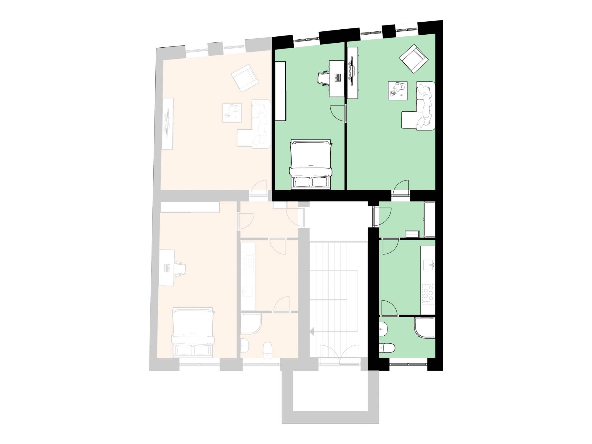 Rekonstrukce byla provedena s důrazem na zachování charakteru budovy při dodržení moderních standardů. V obytných místnostech naleznete krásné dřevěné parkety, v kuchyni a koupelně pak keramickou dlažbu. Celkový dojem podtrhují nová dřevěná okna, která ladí s estetikou domu.
