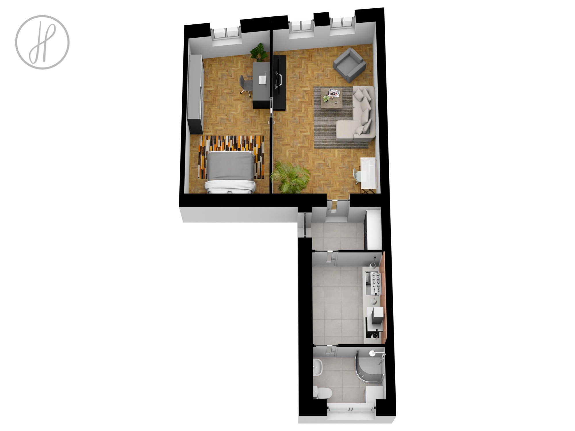 Dispozice jednotky: vstupní chodba, moderní koupelna s WC, prostorný obývací pokoj, samostatná ložnice a kuchyně. Jednotka má vlastní zděné jádro.