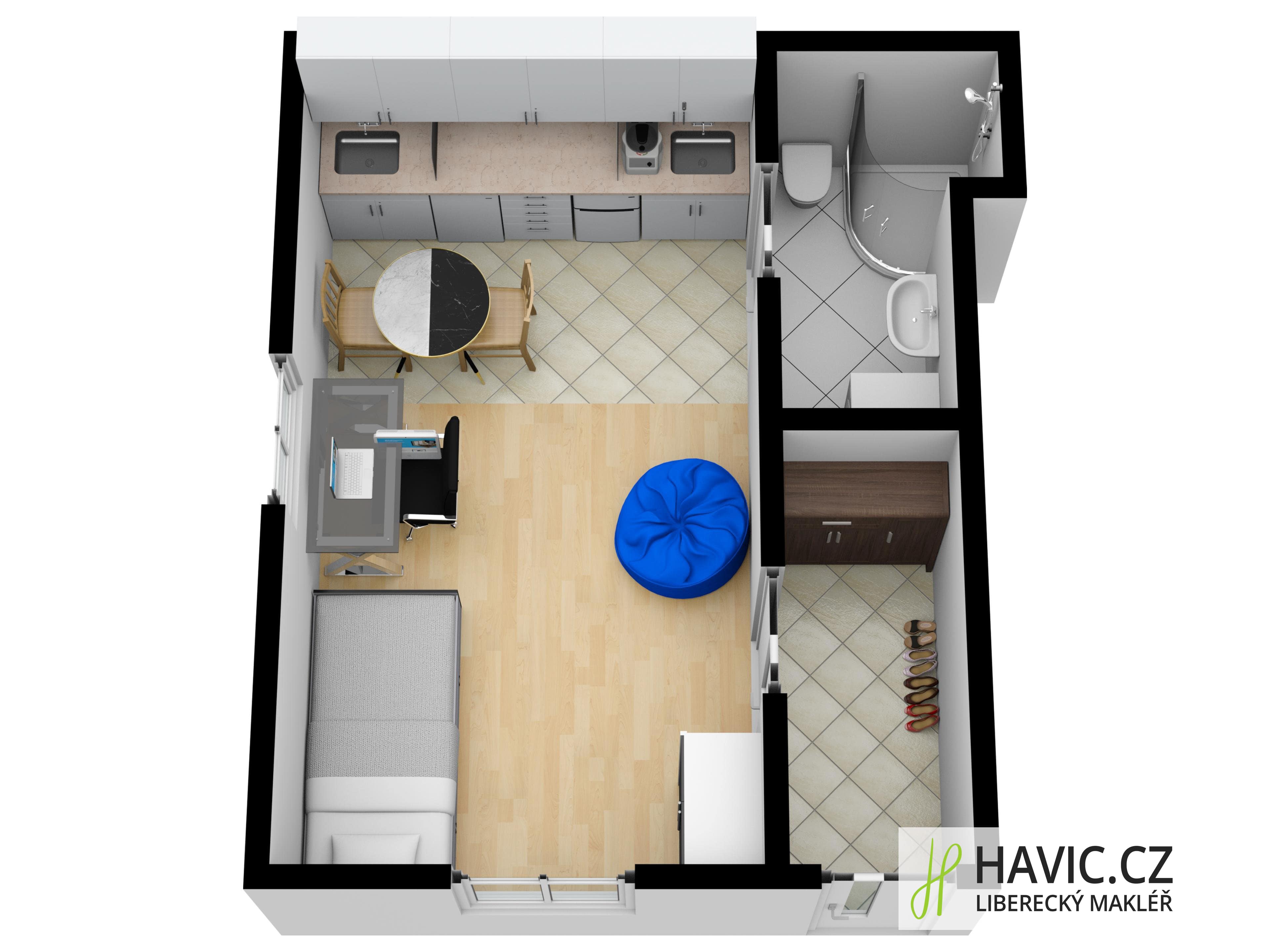 Nabízíme k pronájmu byt 1+kk v Liberci - v Husově ulici 1117.