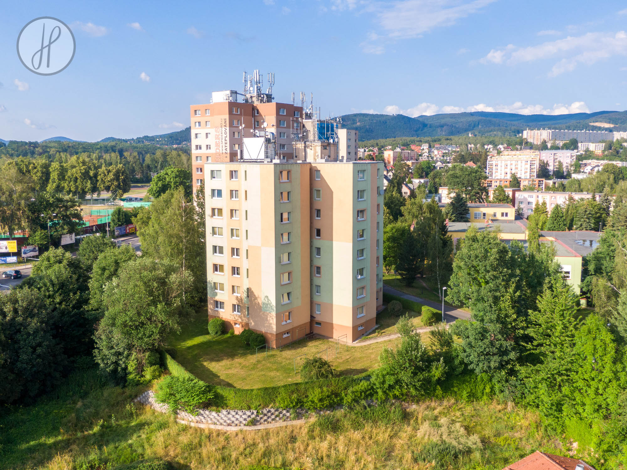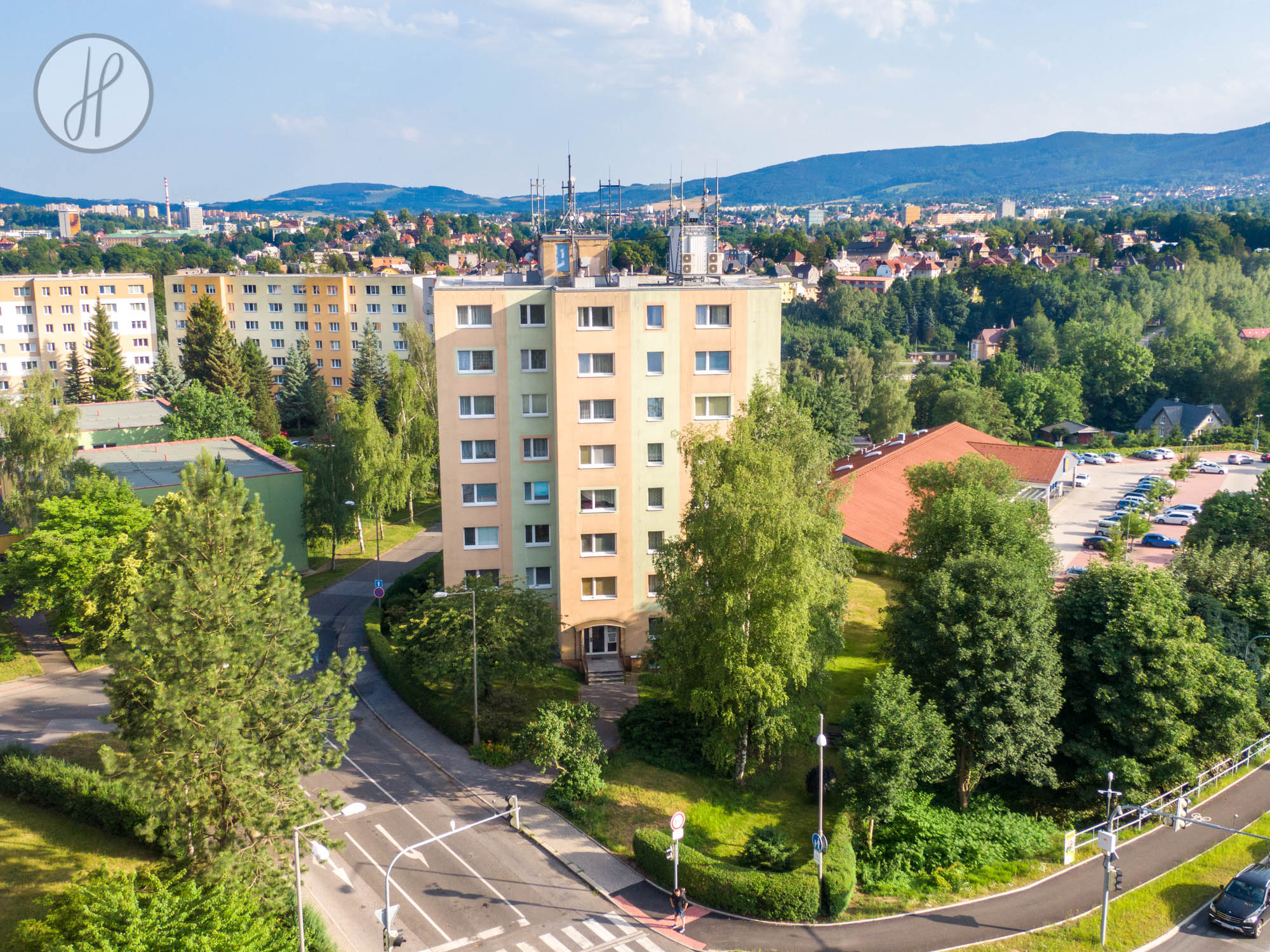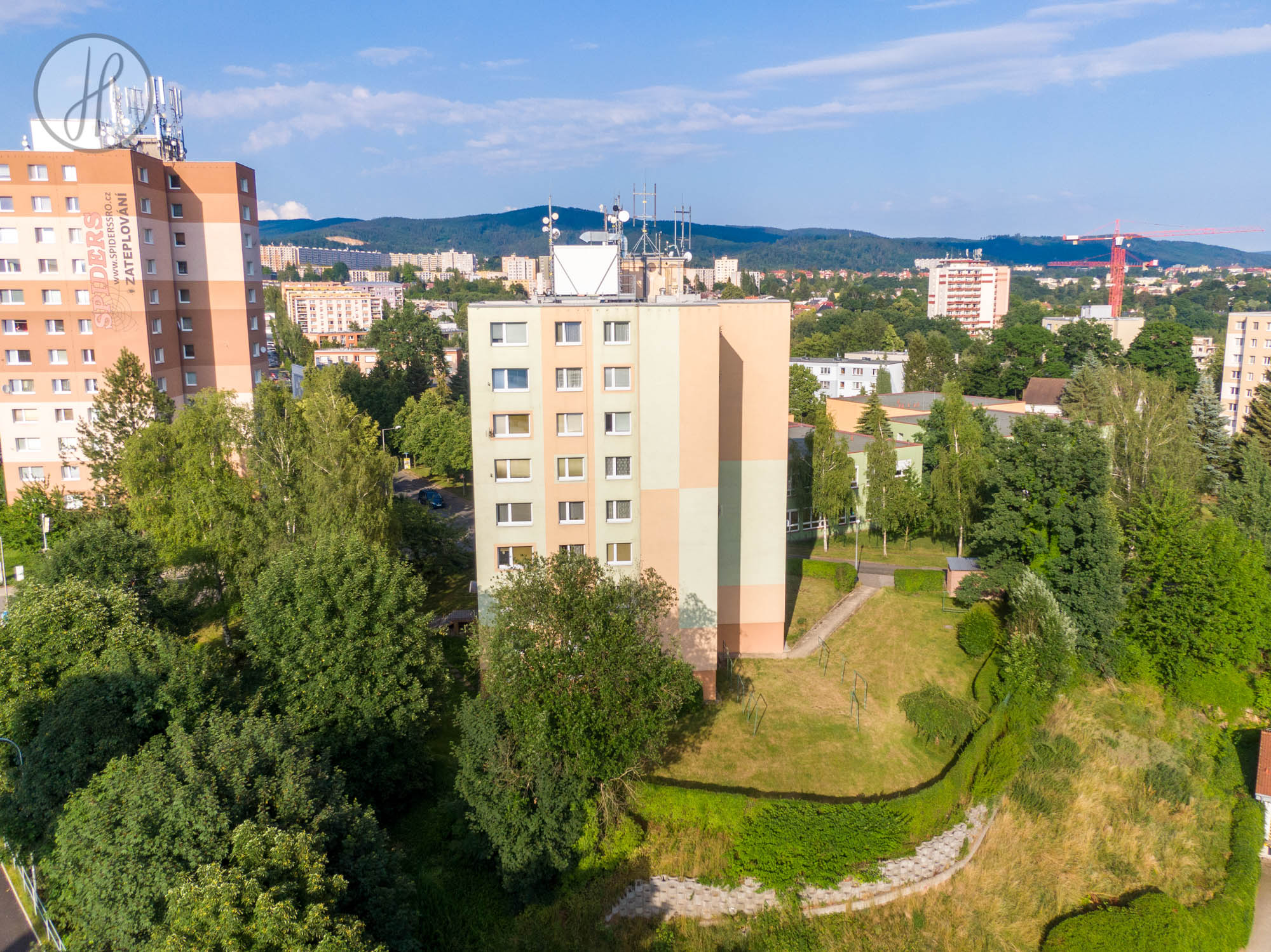 - Vytápění: Dálkové vytápění i ohřev teplé vody jsou řešeny centrálně.