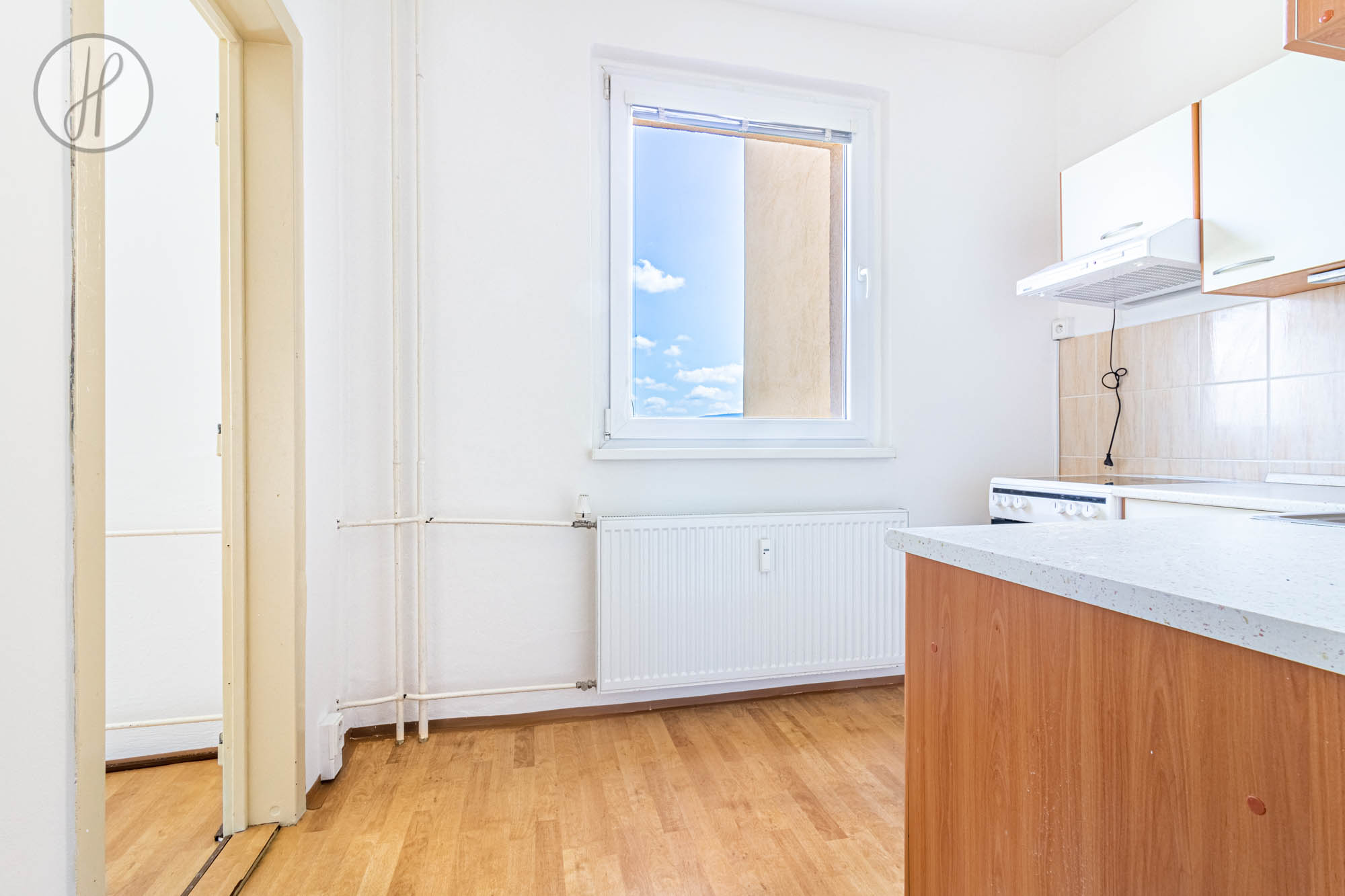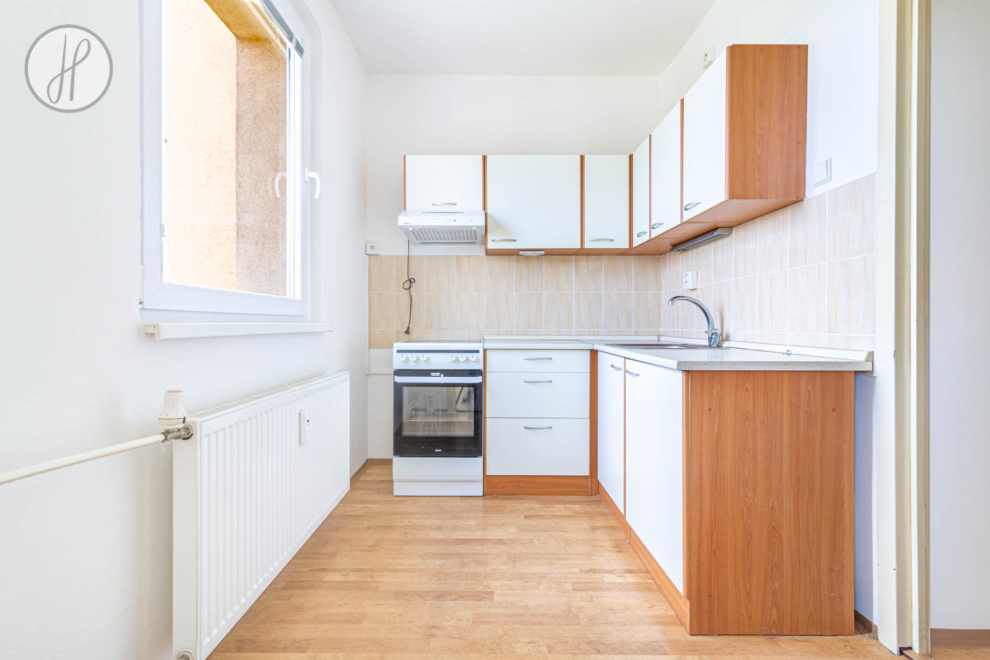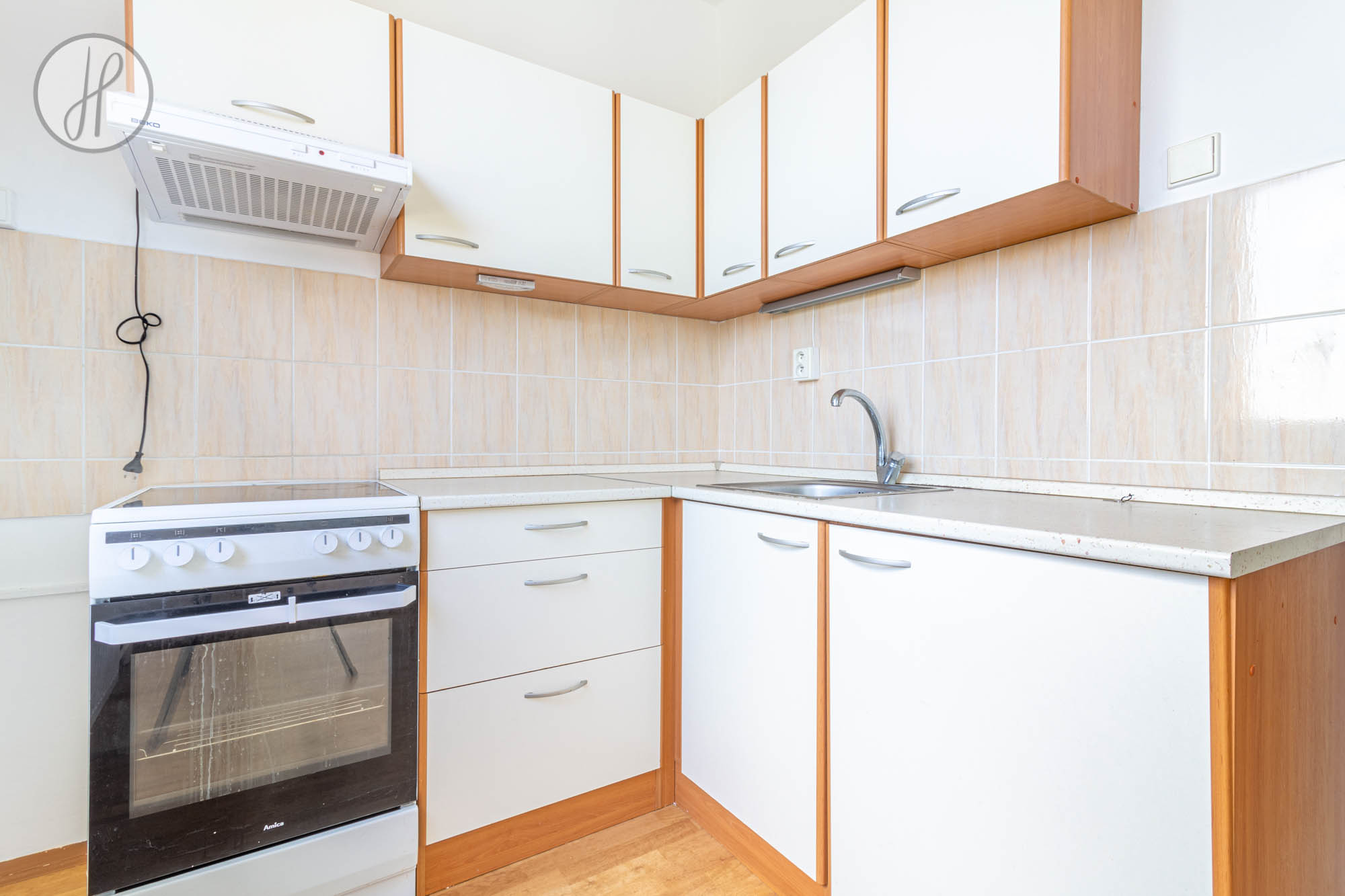 - Vybavení: Kuchyňská linka s elektrickou troubou a sklokeramickou varnou deskou.