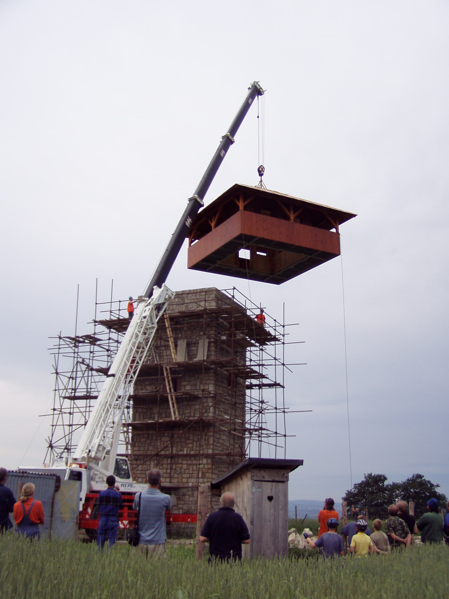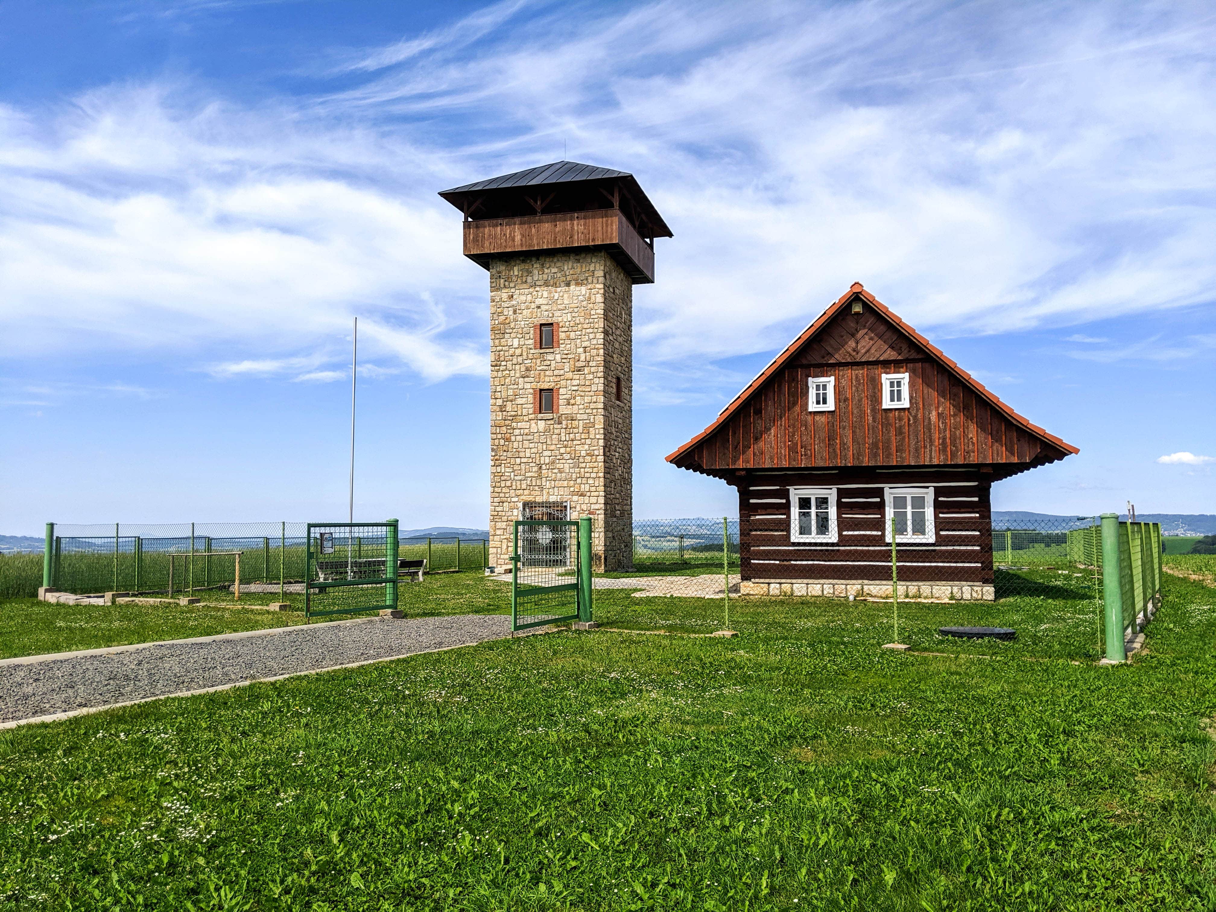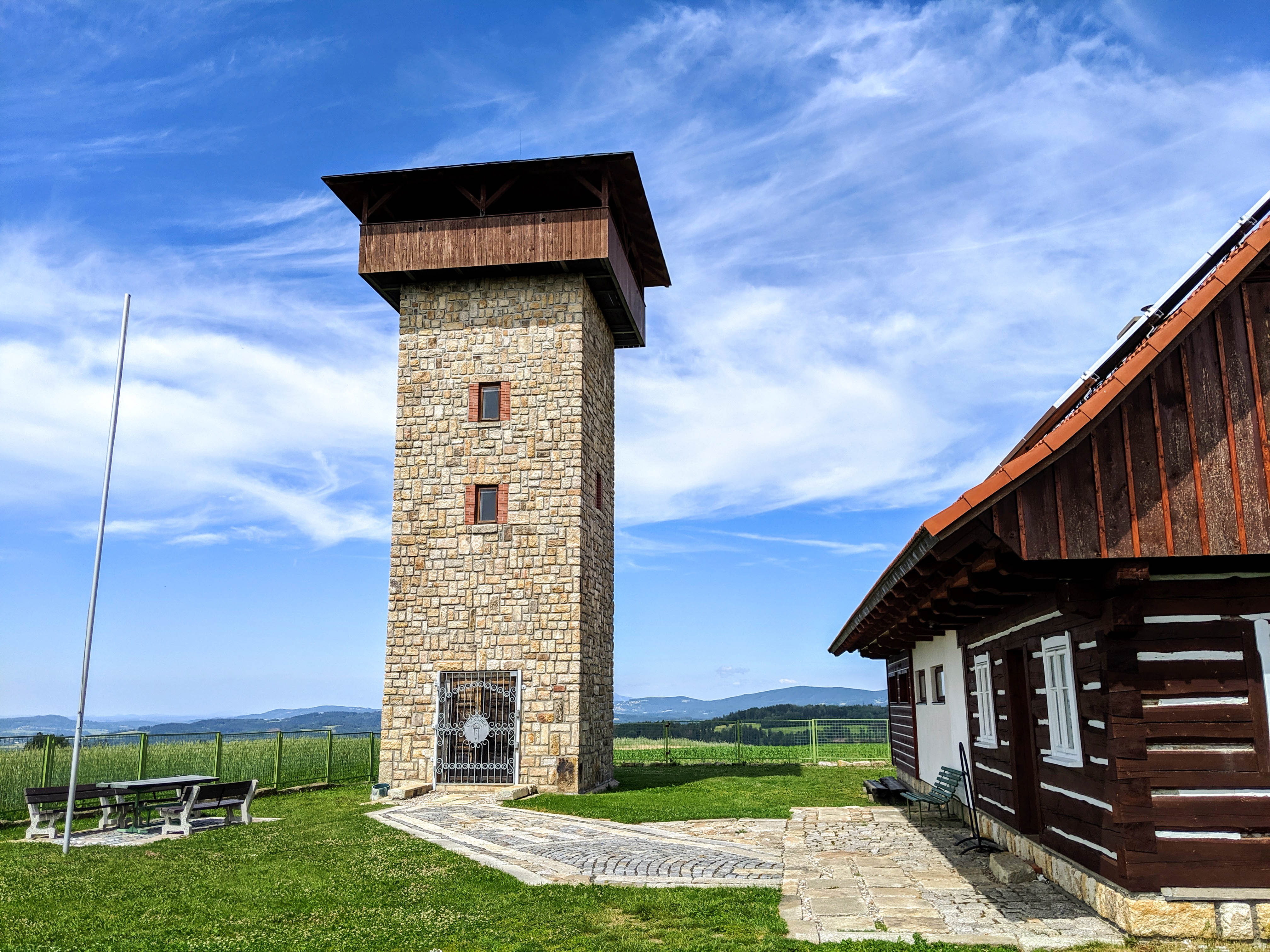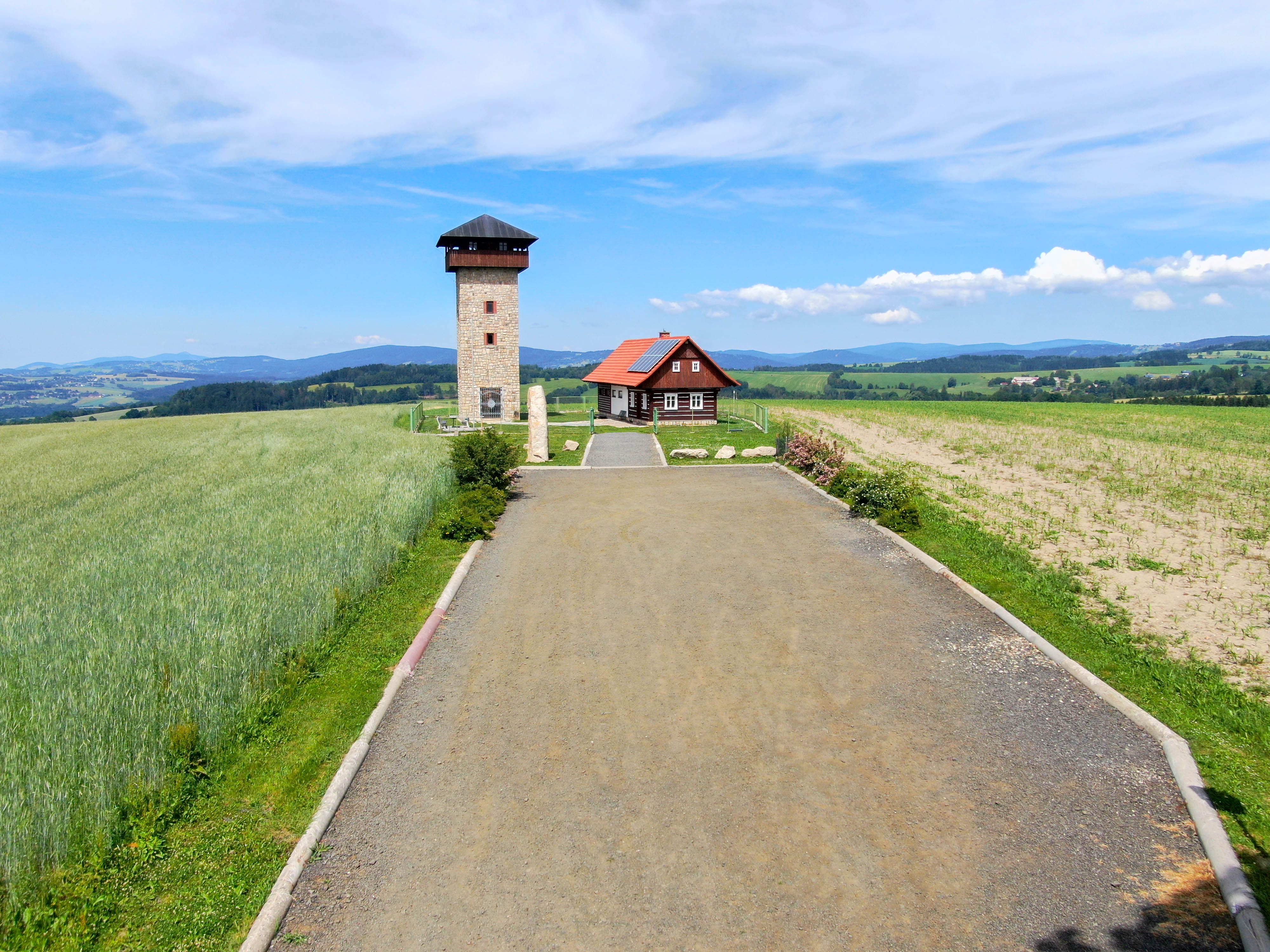 “Každý kámen jsem měl dvakrát v ruce” říká pan Hubař, který kameny nakládal, skládal u domu a následně je dopravoval na místo, kde dnes rozhledna stojí.