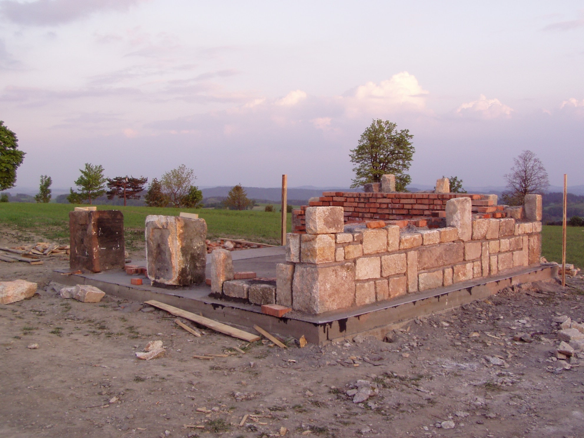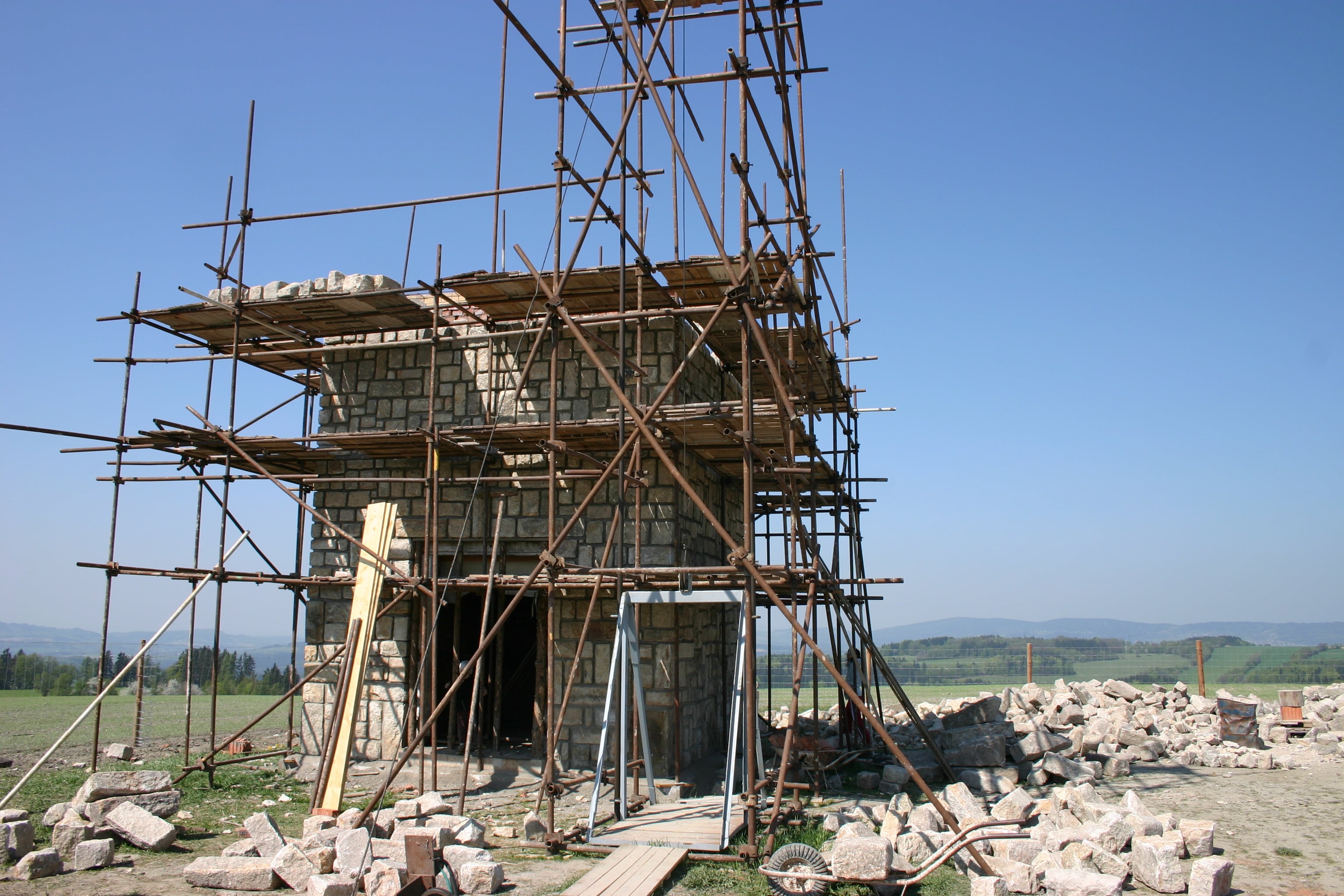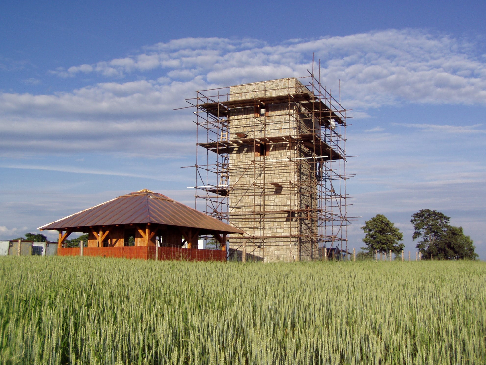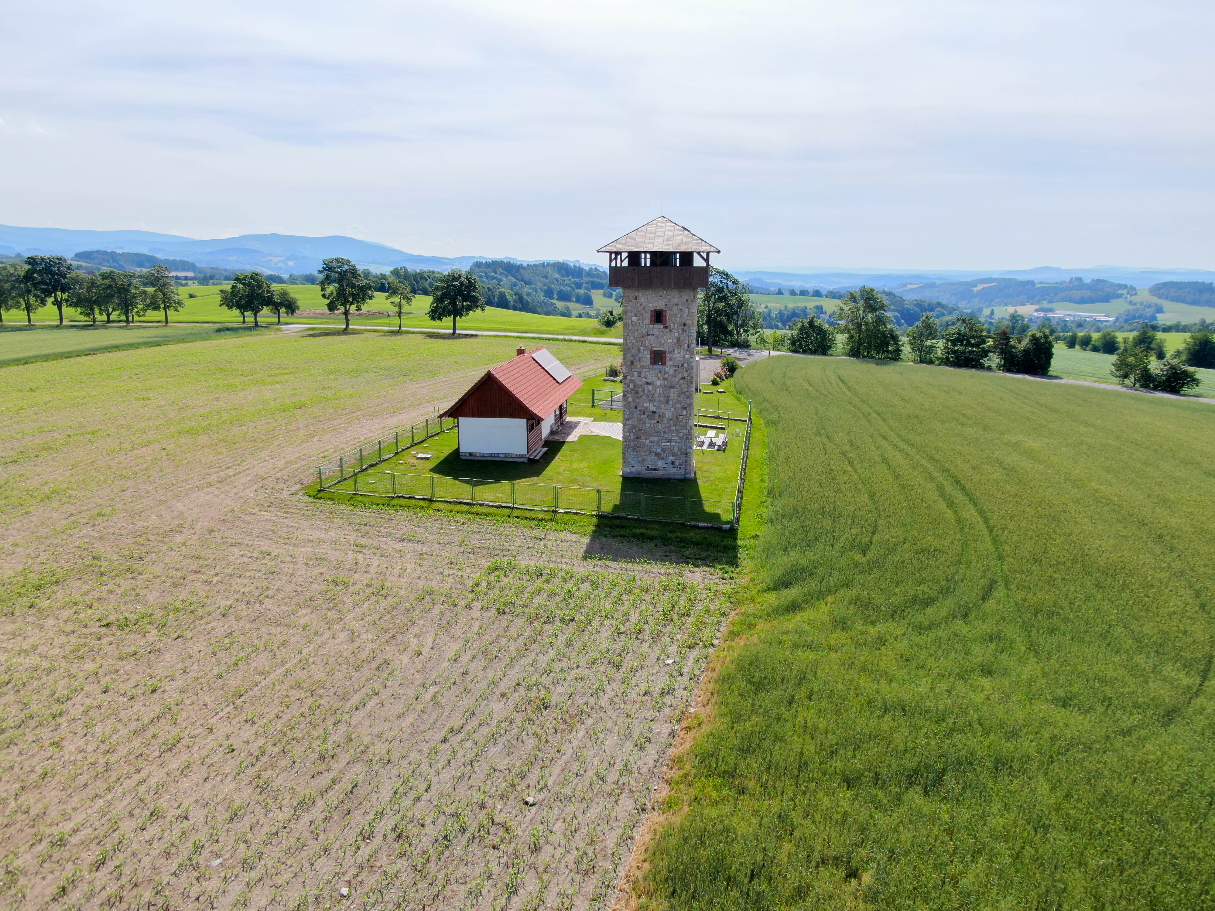 “Každý kámen jsem měl dvakrát v ruce” říká pan Hubař, který kameny nakládal, skládal u domu a následně je dopravoval na místo, kde dnes rozhledna stojí.