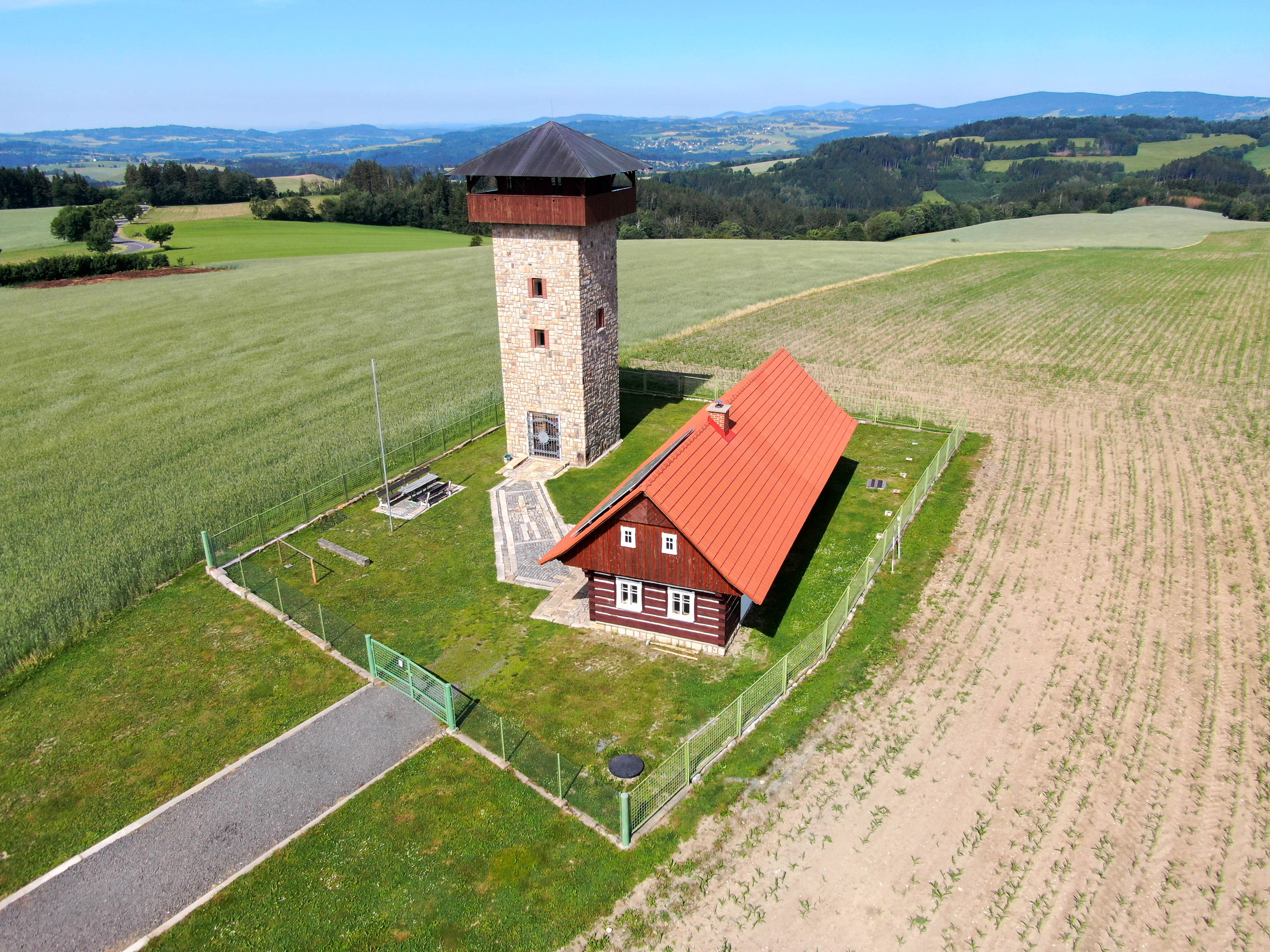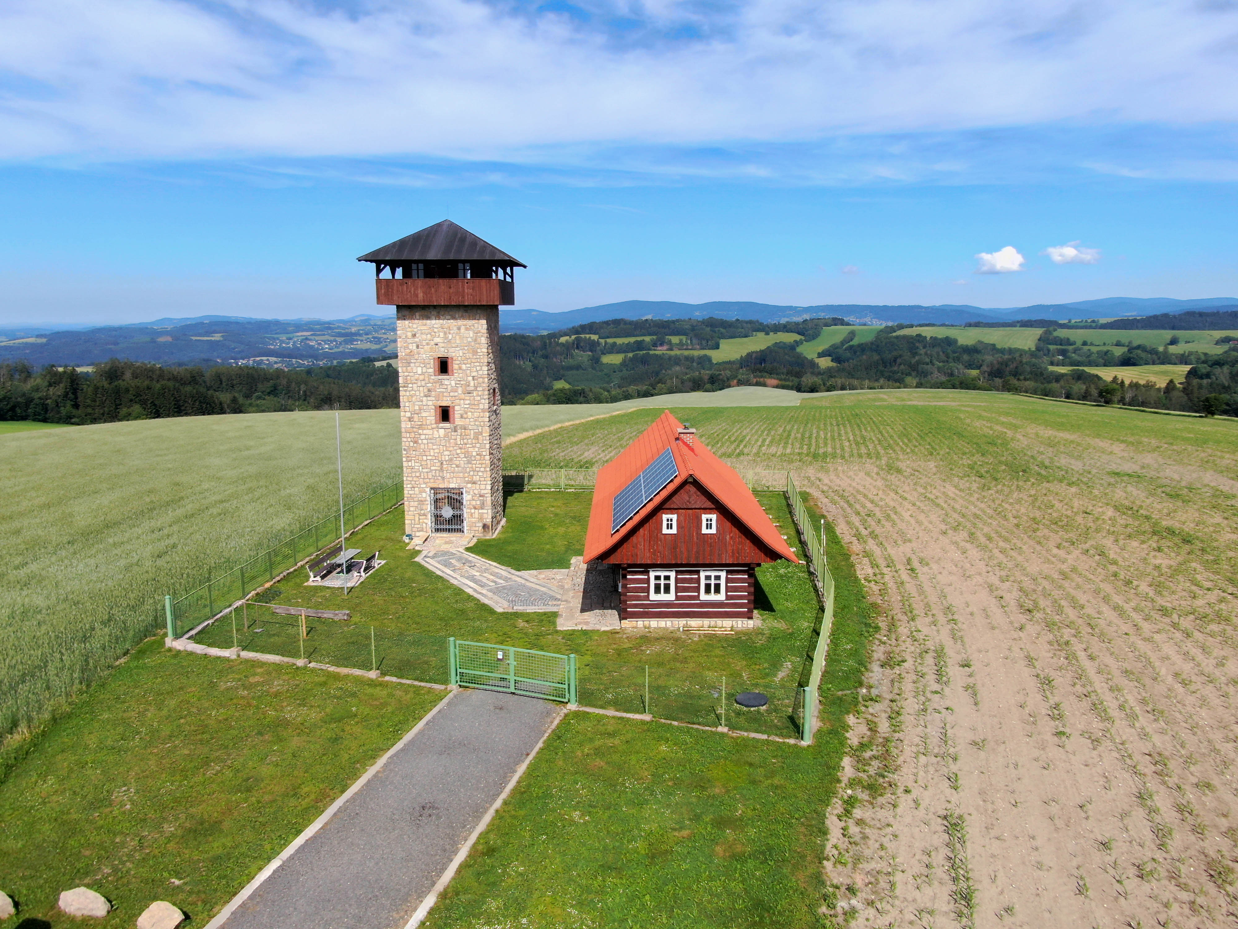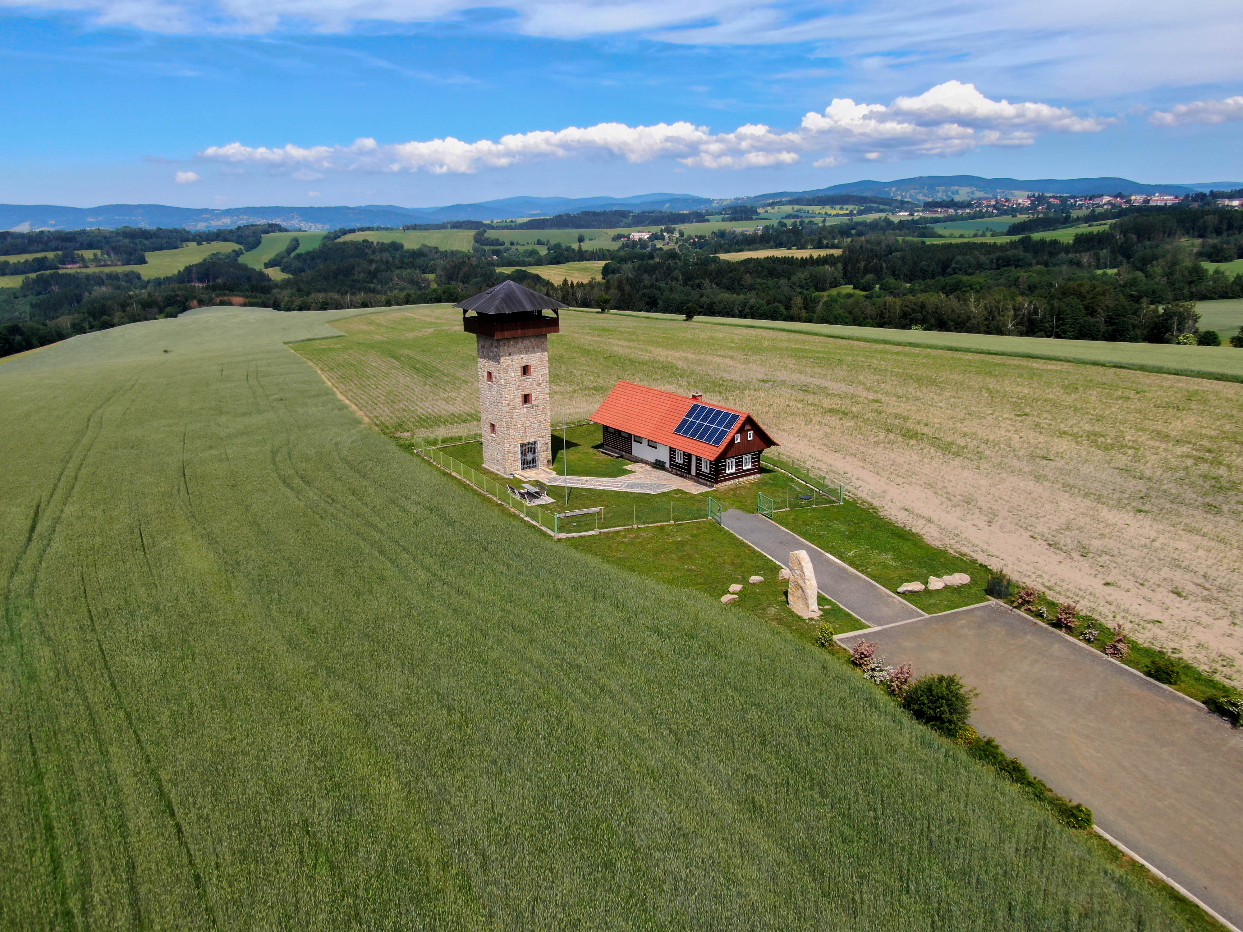Příběh rozhledny začíná před 62 lety v roce 1957. Tehdy desetiletý chlapec stál se svým dědou na lukách, která jim dlouhou dobu patřily. I přesto, že louky již po vstupu do družstva, nebyly dědovy, dále na nich jeho rodina stále hospodařila a často tak byli na místě do pozdních hodin. Toho dne před 62 lety ale desetiletý chlapec viděl slunce zapadající směrem k Ještědu, který je z tohoto místa vidět. V hlavě se mu zrodila myšlenka, že na tomto místě by si chtěl jednoho dne, vlastníma rukama, postavit rozhlednu.