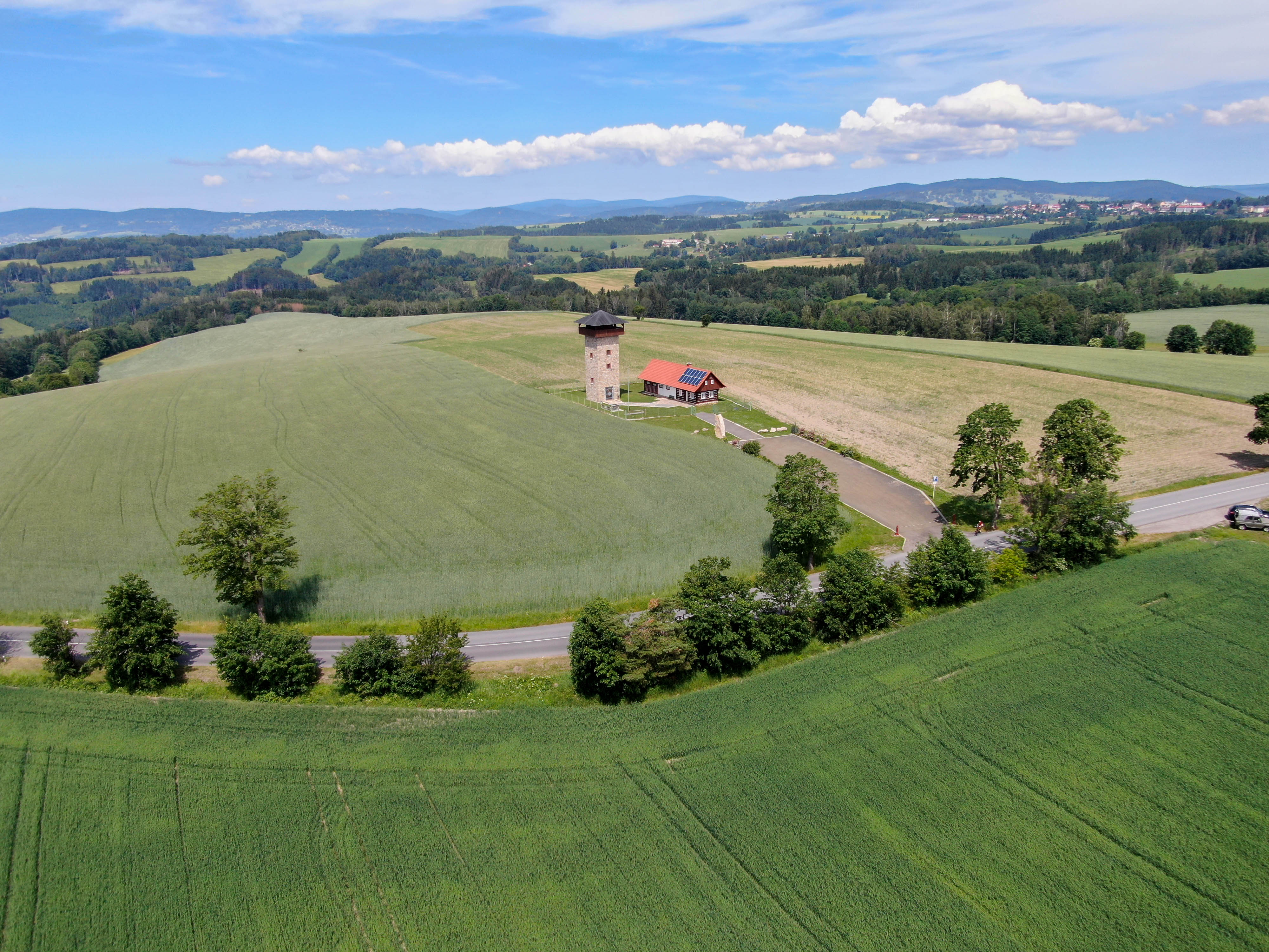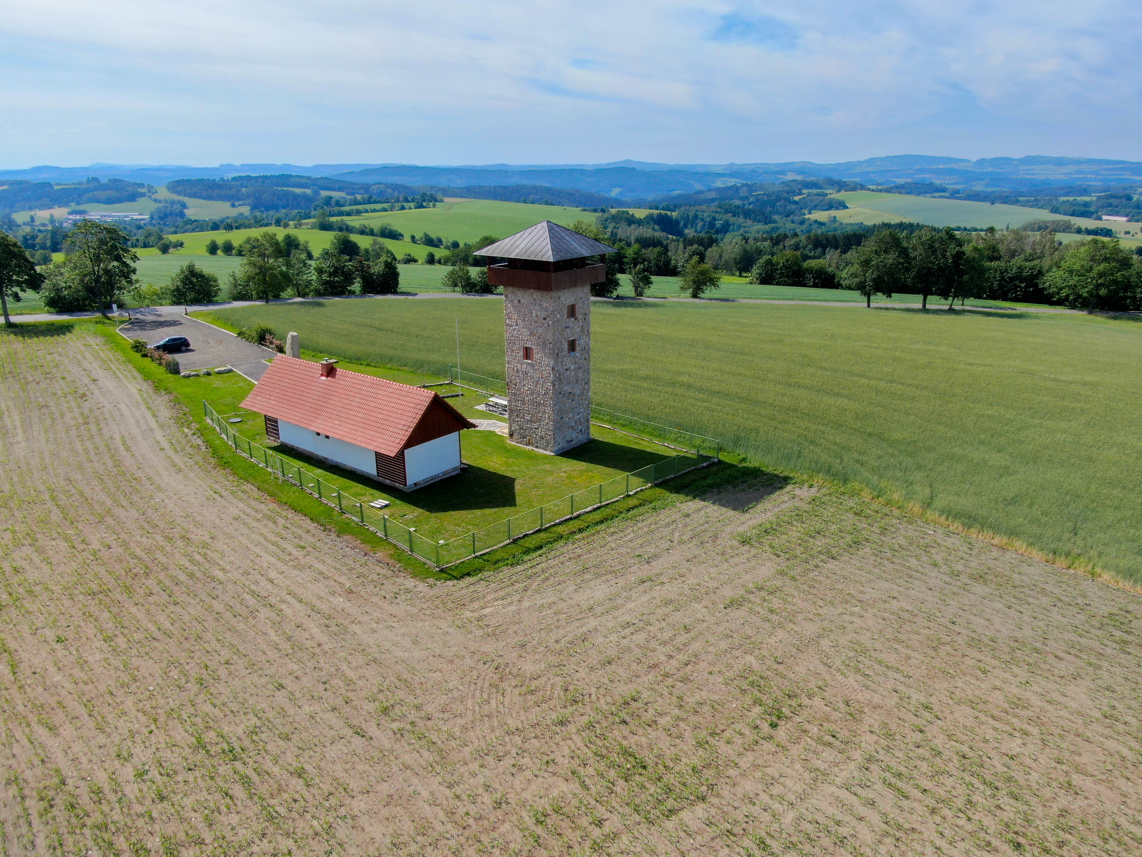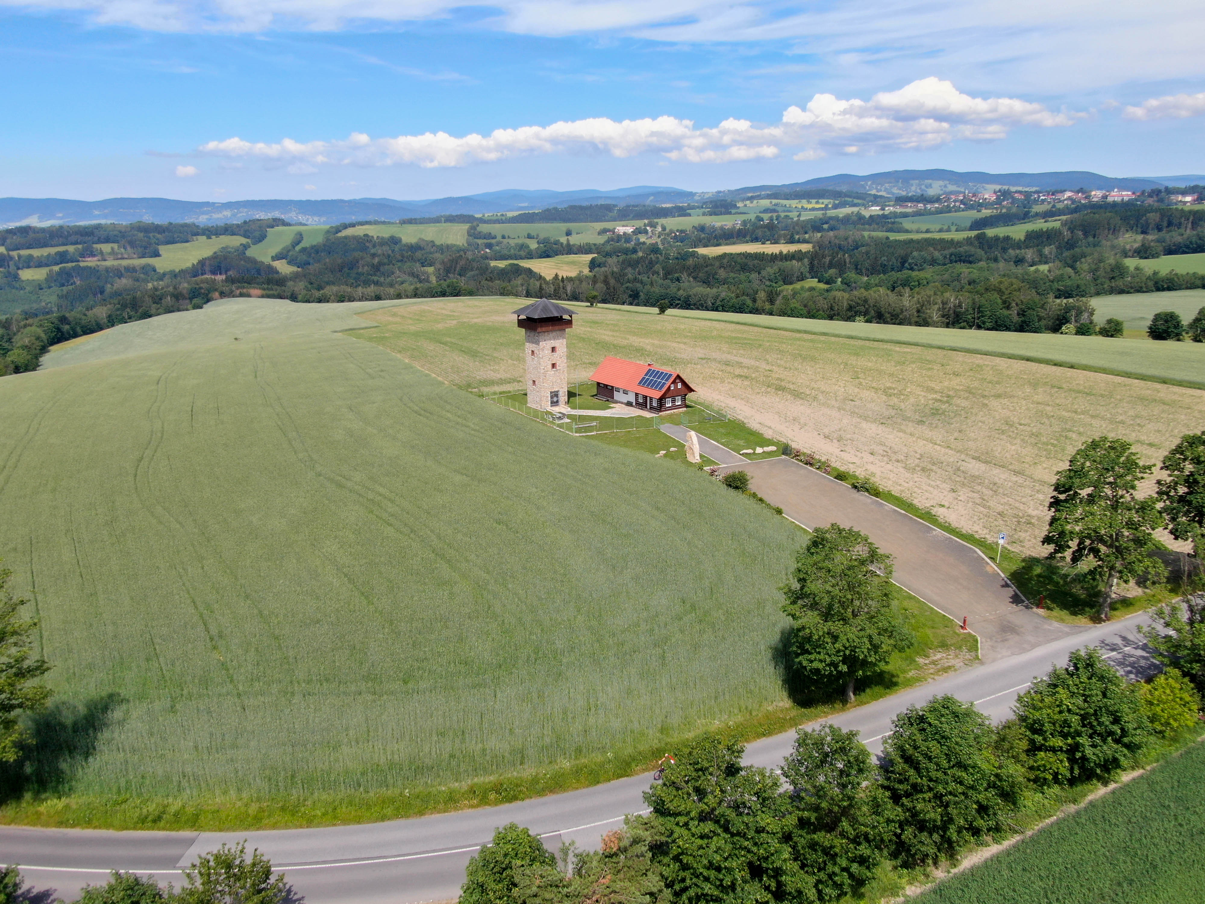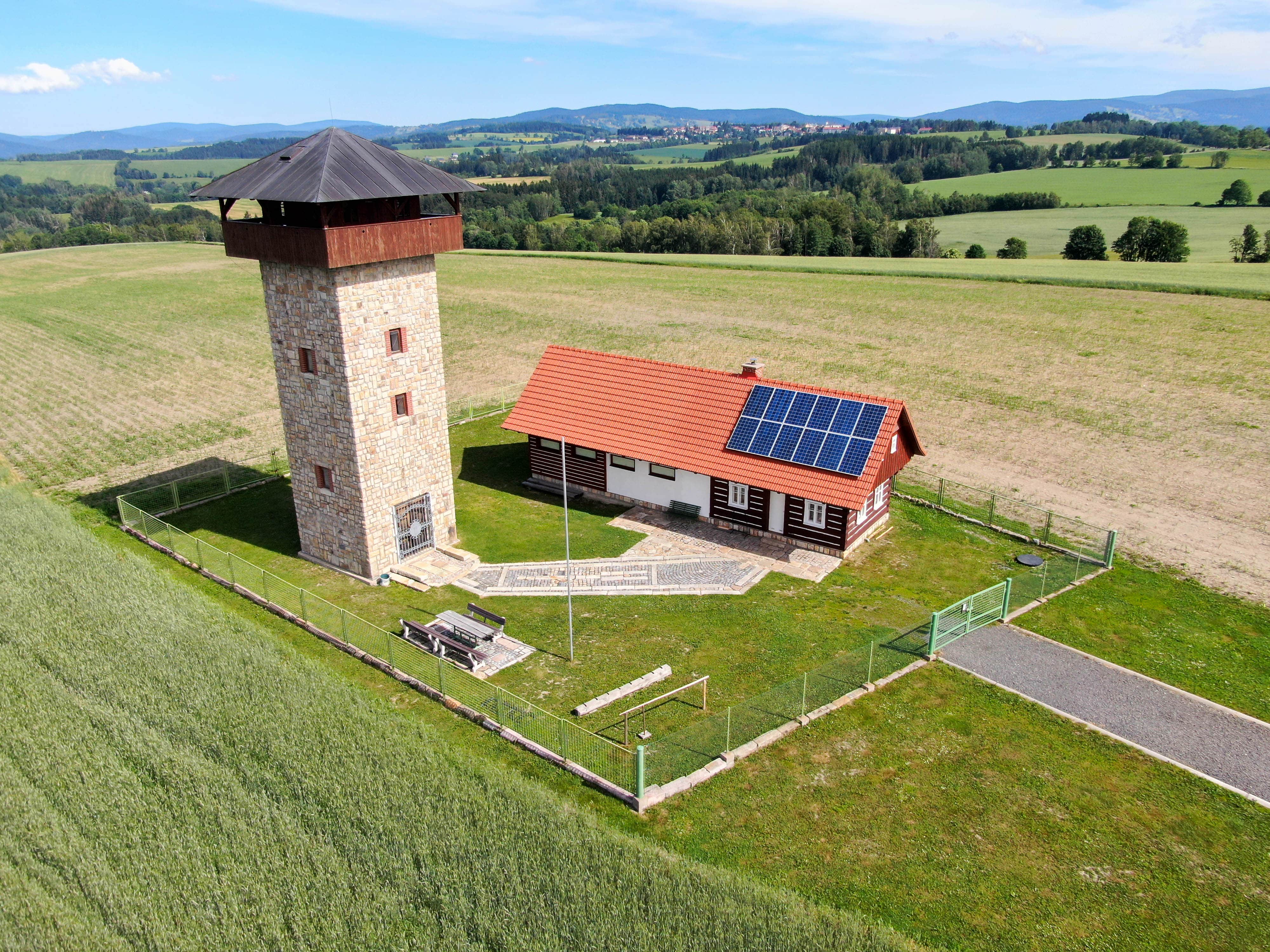 Příběh rozhledny začíná před 62 lety v roce 1957. Tehdy desetiletý chlapec stál se svým dědou na lukách, která jim dlouhou dobu patřily. I přesto, že louky již po vstupu do družstva, nebyly dědovy, dále na nich jeho rodina stále hospodařila a často tak byli na místě do pozdních hodin. Toho dne před 62 lety ale desetiletý chlapec viděl slunce zapadající směrem k Ještědu, který je z tohoto místa vidět. V hlavě se mu zrodila myšlenka, že na tomto místě by si chtěl jednoho dne, vlastníma rukama, postavit rozhlednu.