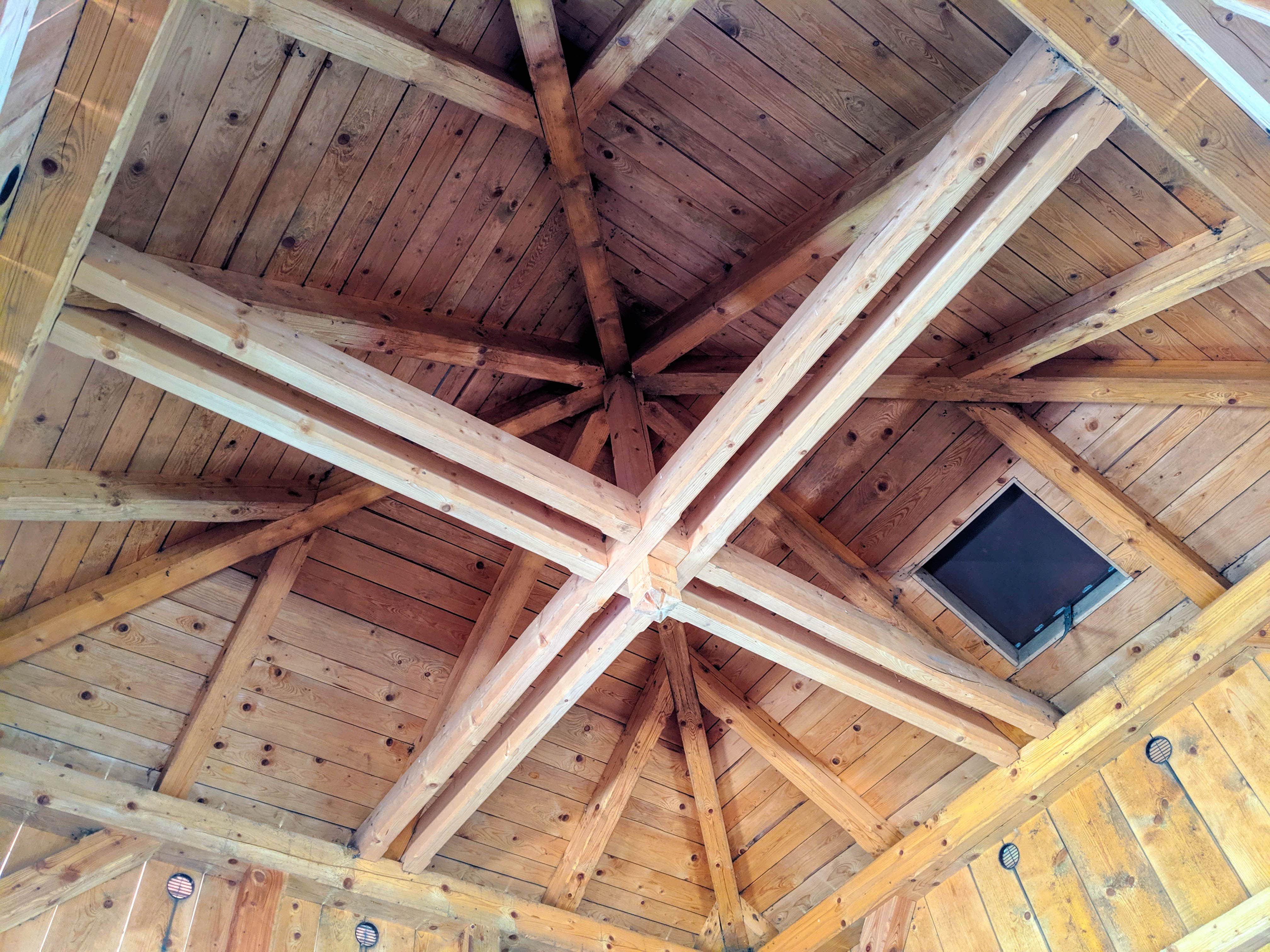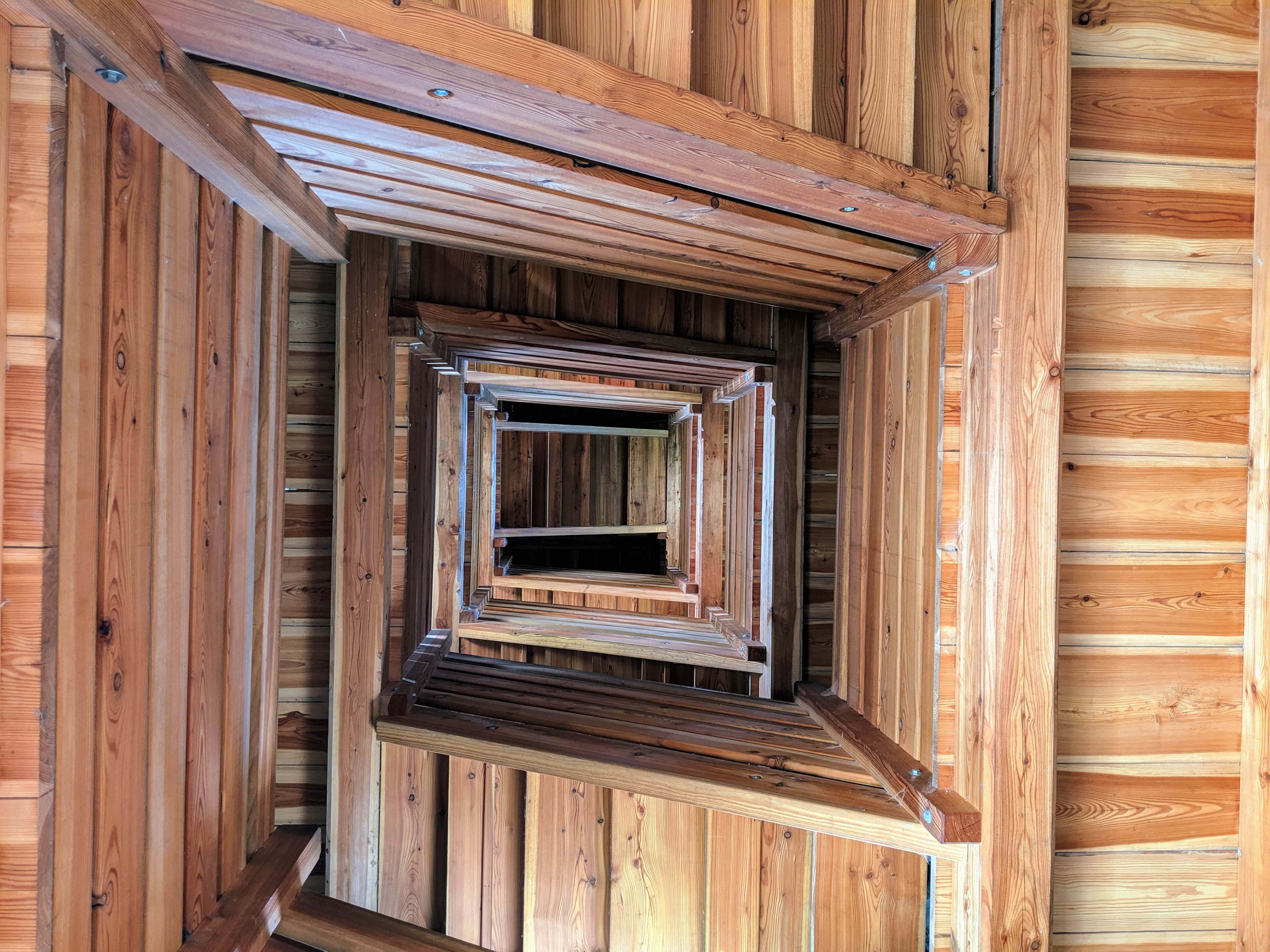 Dřevo pochází z vlastních lesů, které patřily a stále patří rodině po mnoho generací. Toto dřevo bylo poraženo a dlouho skladováno, než zcela proschlo a bylo ho možné použít pro stavbu schodů a vlastního ochozu.